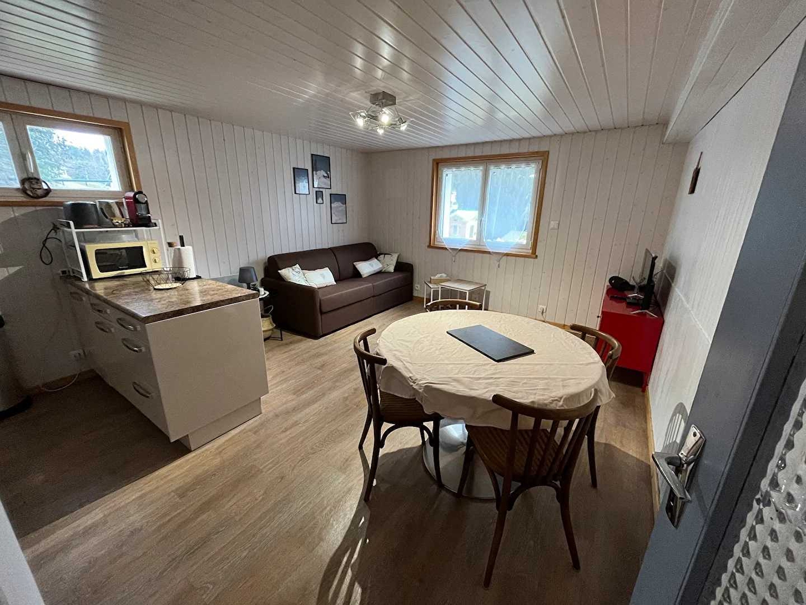Cet appartement situé au RDC de la maison des propriétaires avec entrée commune, se compose d'une pièce de vie avec cuisine toute équipée, d'un coin salle à manger, d'un salon avec canapé convertible et TV (Netflix + TV d'Orange), d'une chambre avec 1 lit double (160*200) et d'une salle de bain avec baignoire et WC. Côté extérieur, un salon de jardin avec barbecue vous permettra de profiter des beaux jours). Idéalement situé, à proximité immédiate des pistes de ski de fond et ski alpin (navette) et des activités de pleine nature, à 600 mètres des supermarchés (Intermarché et Biocoop) et à 15 mns à pied du centre du village.
