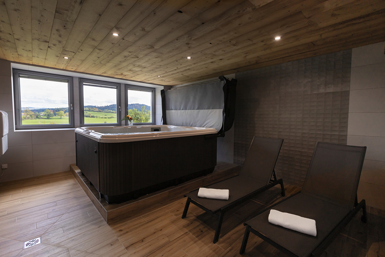 L’espace de vie s’accommodera pour petits et grands et le Jacuzzi intérieur vous permettra de passer un moment agréable et ressourçant.