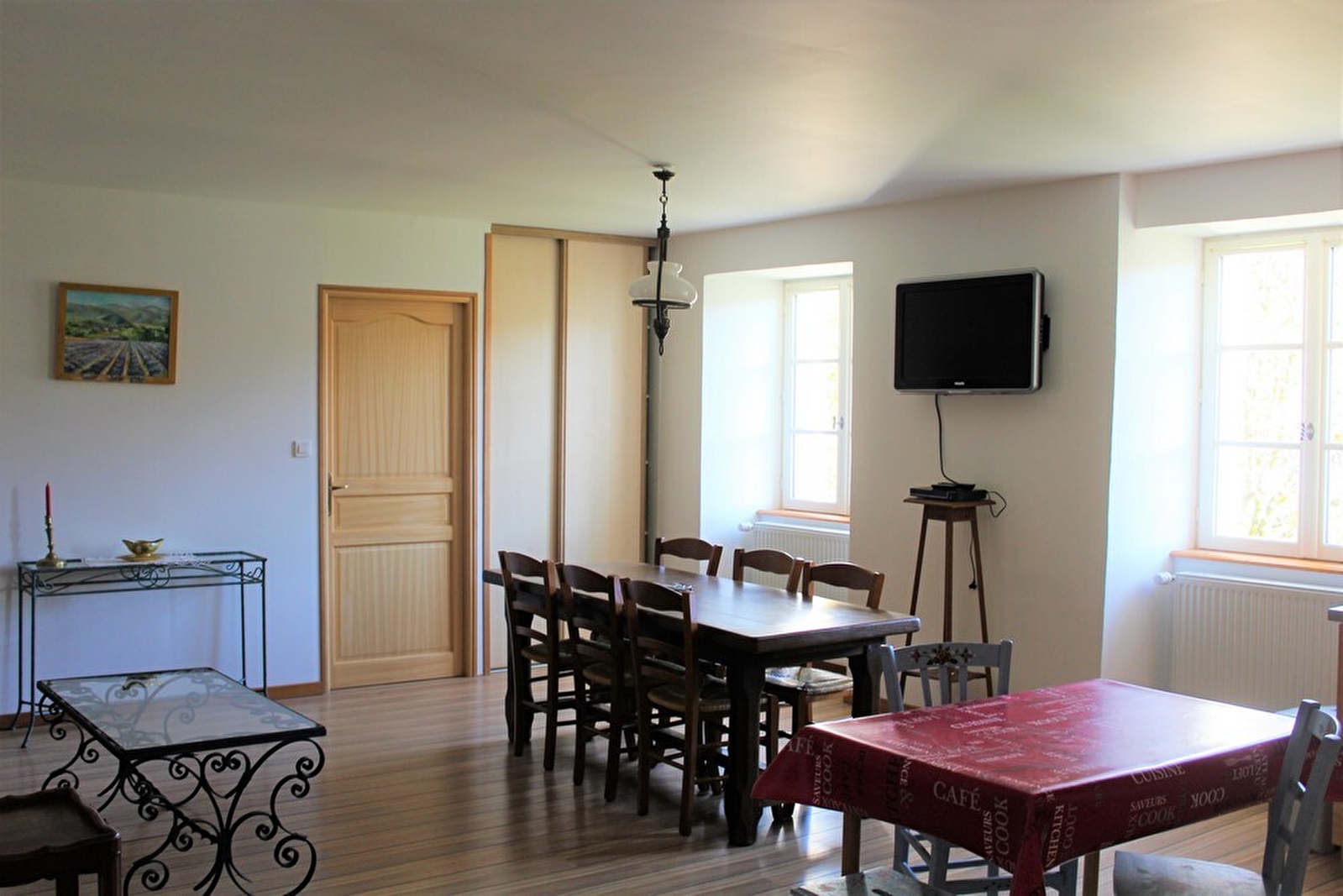 Idéalement situé à proximité des Lacs et des sites touristiques remarquables, au coeur du 1er plateau, sous les ruines du vieux château, logement aménagé à l'étage d'une maison mitoyenne à celle des propriétaires. Pièce à vivre composée d'un coin cuisine entièrement équipée et d'un séjour-salon avec canapé, tv écran plat et lecteur DVD. Une première chambre avec 2 lits de 90cm, une seconde chambre avec 1 lit de 140cm, une vaste salle d'eau avec douche et machine à laver. Wc indépendants. Terrasse couverte équipée d'un salon de jardin et barbecue. Terrain attenant non clos.