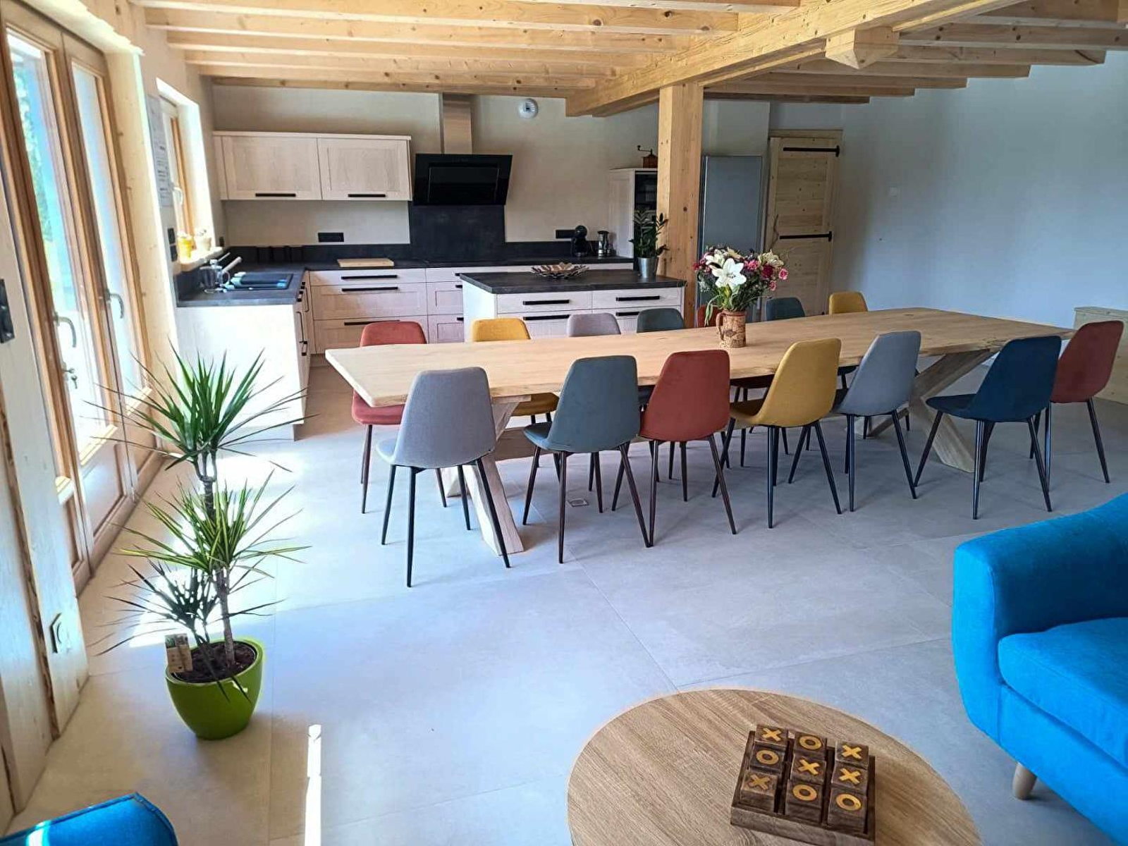 Besoin de vous ressourcer? de partager des moments conviviaux en famille ou entre amis? alors bienvenue au gîte du soleil couchant. Cette maison entièrement rénovée alliant le bois et la pierre, se compose au RDC d'une vaste pièce de vie avec cuisine équipée, espace salle à manger et coin détente, d'un espace bien-être avec spa (avec douche et WC), d'une suite parentale accessible PMR avec 1 lit double (160*200), une salle d'eau avec douche et WC, d'un studio équipé d'une cuisine, d'1 lit en 160*200, d'une salle d'eau avec douche et WC (idéal pour 2 personnes qui souhaitent avoir plus d'indépendance). A l'étage, mezzanine avec coin salon/TV, salle de jeux avec baby-foot et jeu de fléchettes, 4 chambres : 2 chambres avec 1 lit double (160*200) et 1 lit simple (90*200) et 2 chambres avec 2 lits simples (90*200) pouvant être jumelés, 2 salles d'eau avec douche et 2 WC indépendants. Pour votre plus grand confort, les lits seront faits à votre arrivée et les linges de toilettes sont fournis. Côté extérieur, vous pourrez profiter d'une terrasse avec salon de jardin, transats, barbecue, aire de jeux pour enfants et terrain de pétanque. Des panneaux solaires permettent d'alimenter la maison en eau et chauffage. Idéalement situé, vous trouverez une fromagerie à 200 mètres et un restaurant à 500 mètres. Le centre du village est à 2kms (restaurants, supermarché, fromagerie, bureau de tabac...). Les sentiers VTT, ski de fond et raquettes partent depuis le gîte et un fil neige pour l'apprentissage du ski de descente se trouve à 2 kms. Le parc polaire de Chaux Neuve, les gorges de la Saine et de la Langouette se trouvent à une dizaine de minutes