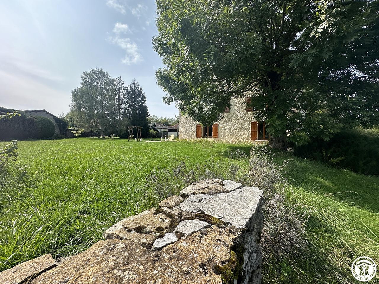 Le gîte est au fond d'une impasse très calme, au milieu de 3000 m2 de terrain arboré et fleuri. Face à l’entrée, une belle terrasse plein sud, avec pergola, donne sur le devant du terrain avec la vue sur les grands arbres. Nous avons installé un composteur et un wc sec en extérieur sera disponible à la belle saison.