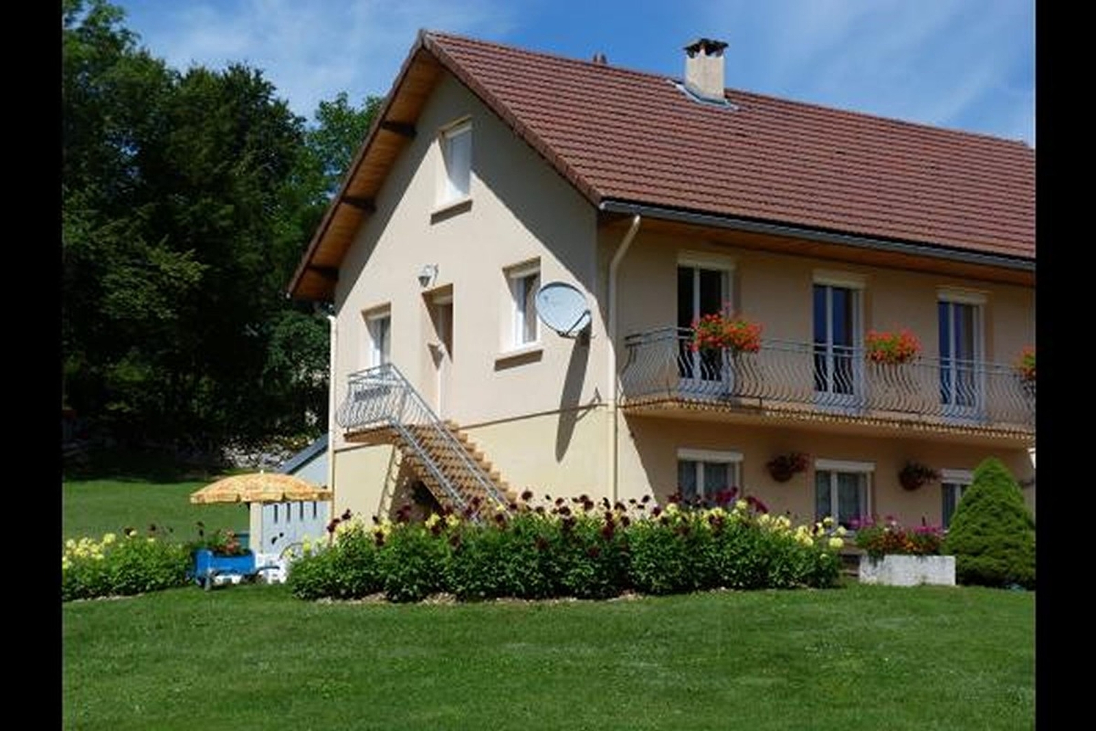 Appartement de 34 m² au rez-de-chaussée de la villa du propriétaire, avec entrée indépendante : cuisine-séjour (canapé convertible (140x190), télévision, lave-linge), 1 chambre (1 lit 2 pers.), salle d'eau avec WC. Chauffage central. Parking, terrasse avec salon de jardin, local à skis. Petits animaux admis. Piscine, pêche, tennis et terrain de pétanque à 1 km. Baignade surveillée au plan d'eau de Champdor à 8 km. Ski de fond et ski alpin à 5 km. Possibilités de randonnées pédestres, VTT, parcours aventure, à proximité casino, ferme équestre de Lavant et les visites gourmandes des fromageries d'Aranc et de Brénod.
