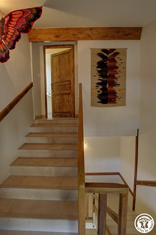 Il peut accueillir jusqu'à 6 personnes, avec ses deux chambres et ses deux sanitaires. Par une entrée commune, vous accédez au 2ème étage de cette belle maison., puis l'entrée se fait directement sur cette grande pièce de vie composée d'une cuisine équipée et ouverte sur l'espace repas suivi dans le prolongement, d'un espace détente avec une cheminée électrique à led à effet feu de bois très réaliste. Vous serez charmé par la charpente et la luminosité grâce à de grands velux avec volets solaires qui vous offrent une vue panoramique sur la vallée. Vous disposez de deux chambres indépendantes :une très grande chambre de 30 m² au sol comprenant deux lits doubles en 160*200 avec possibilité de garder son intimité grâce à sa décoration, le plus de cette chambre : une salle d'eau privative (avec WC et velux). La deuxième chambre (2 lits simples en 90*190) vous mènera dans cette belle forêt, où vous pourrez vous bercer d'une douce lumière. Une deuxième salle d'eau est accessible depuis le séjour et comprends une douche et un WC. Chauffage électrique. Vous apprécierez à votre arrivée que les lits soient faits, le linge de toilette fournis et les charges incluses. Dans la même bâtisse, deux gîtes de 5 et 3 personnes pour des retrouvailles en famille ou entres amis. Louez ensemble, vous disposez alors d'un grand verger pour tous vous retrouver dans un cadre champêtre. Venez découvrir Samognat avec son lac, ses montagnes, sa forêt, les sentiers aux départ du gîte. Site idéal pour de nombreuses balades en VTT ou à pied, jusqu'aux sauts de Charmine ou aux abords des Gorges du val d'Enfer. La propriété domine une vallée verdoyante où serpente le ruisseau l'Anconnans et la rivière l'Oignin.