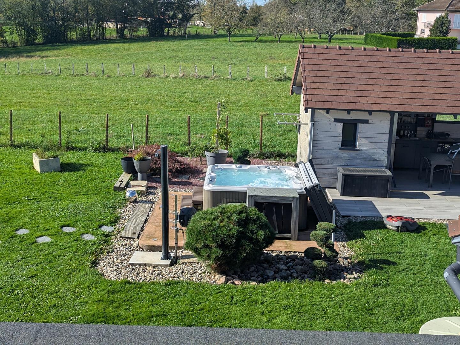 Gite Classé **** au charme unique avec tout le confort. - Entièrement climatisée, pouvant accueillir jusqu'à 6 personnes. Sur un domaine de plus de 2 Hectares ''Les Caravottes» offrent calme et nature. - Jacuzzi extérieur accessible toute l’année - 2 charmantes chambres dont 1 Suite parentale luxueuse, les lits seront faits à votre arrivée et les linges de lits sont fournis - Parc avec étang : Chèvre naine, poules, lapin... Situé à 2 min de la sortie 8 A39 proches de commerces et restaurants. C’est un lieu parfait pour un séjour paisible en famille.