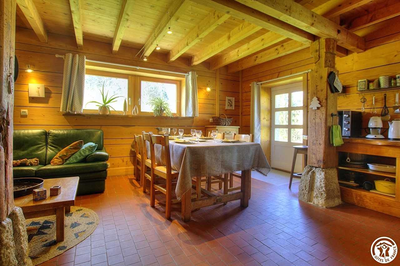 Capacité de 6 personnes – superficie de 90 m² sur 2 niveaux - aménagement bois de qualité - chauffage bois : poêle danois à bûches.