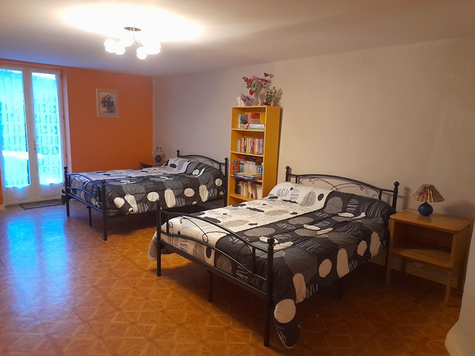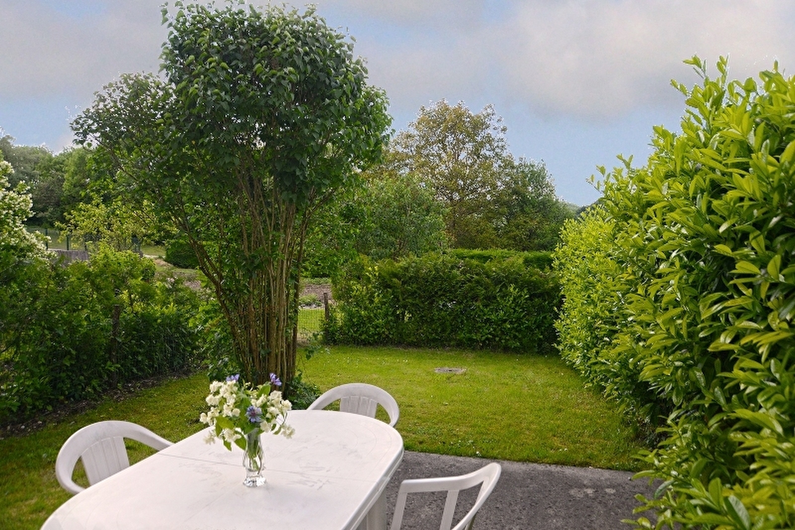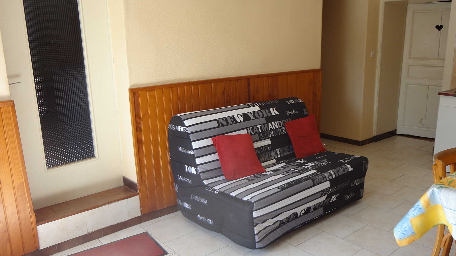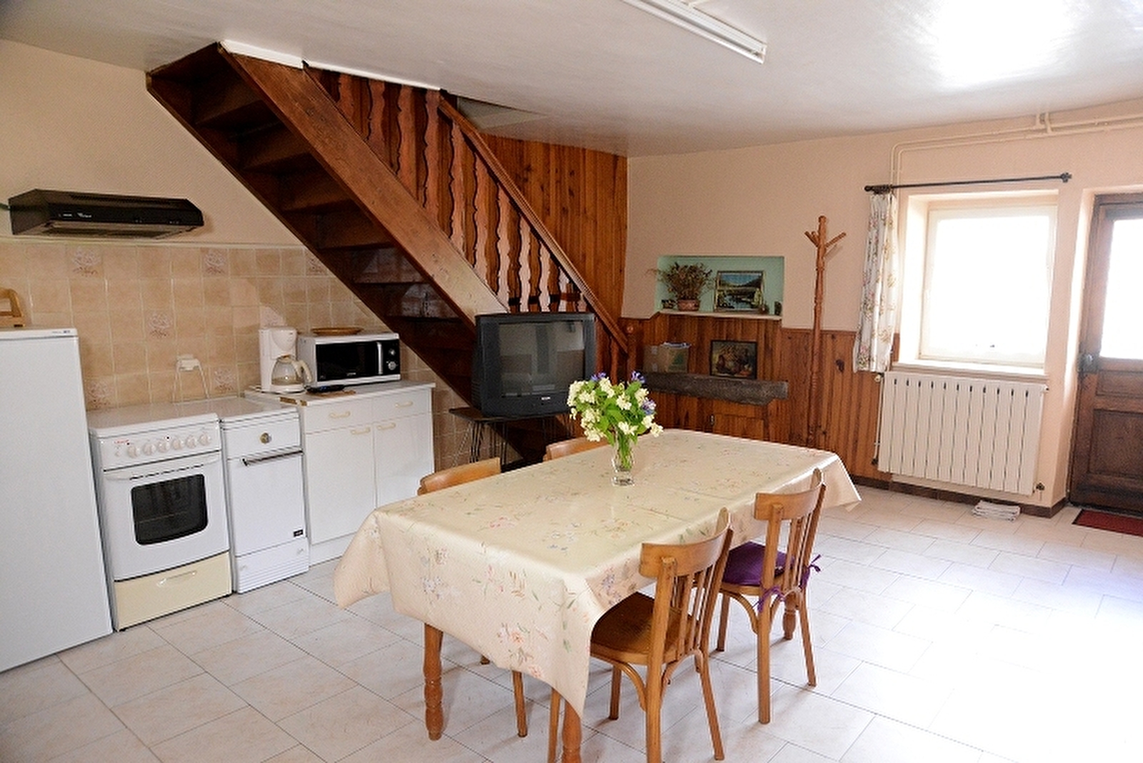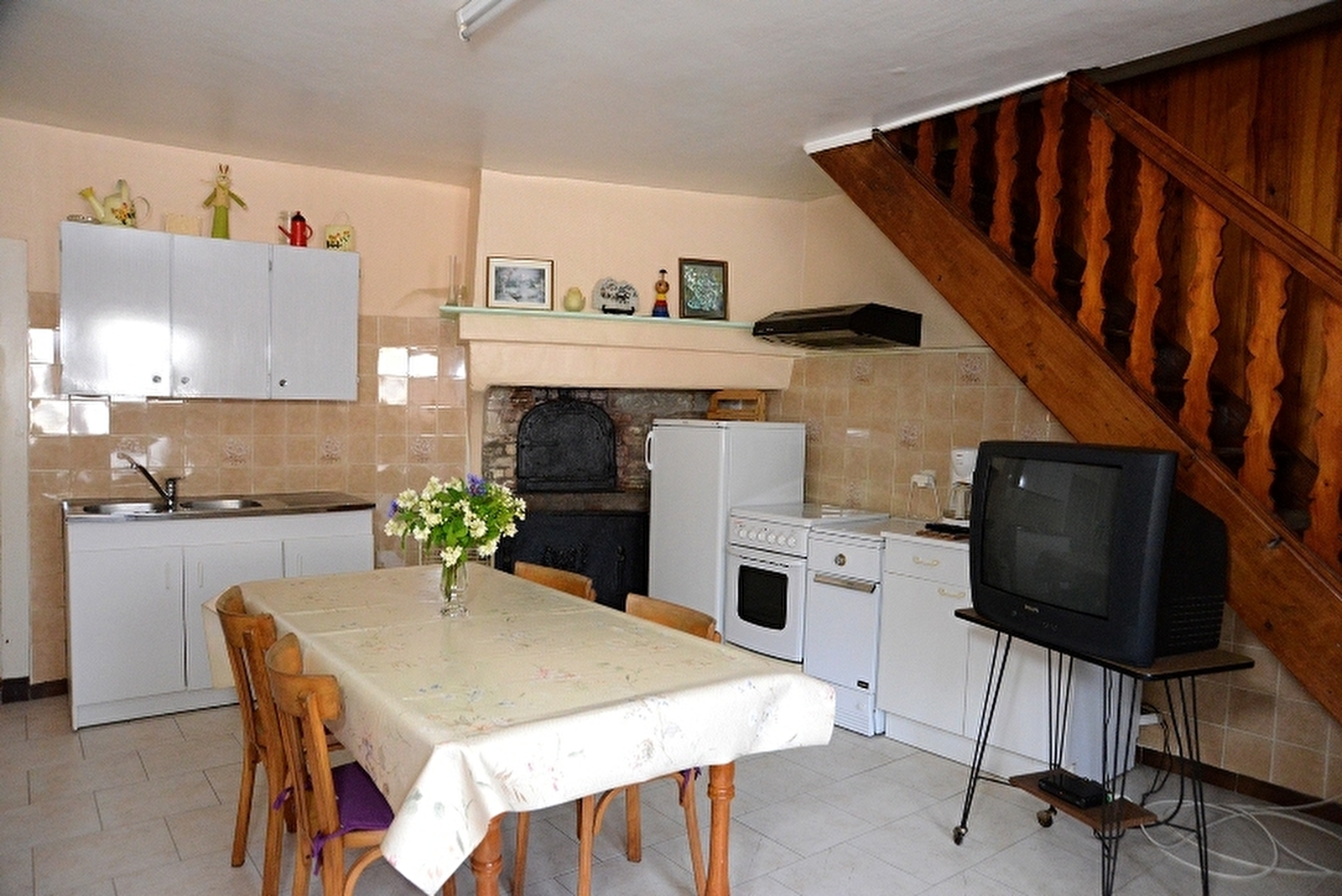 Appartement au rez de chaussée de la maison du propriétaire en plein coeur du village avec cuisine séjour, ch1: 2 lits 2 pl, ch2: 1 lit 2 pl, salle d'eau, wc indépendant. Petit jardin clos, salon de jardin, barbecue. Chauffage central. Toutes charges comprises. A disposition: chaise bébé, jeux et livres pour enfants. Les deux chambres sont communiquantes.
