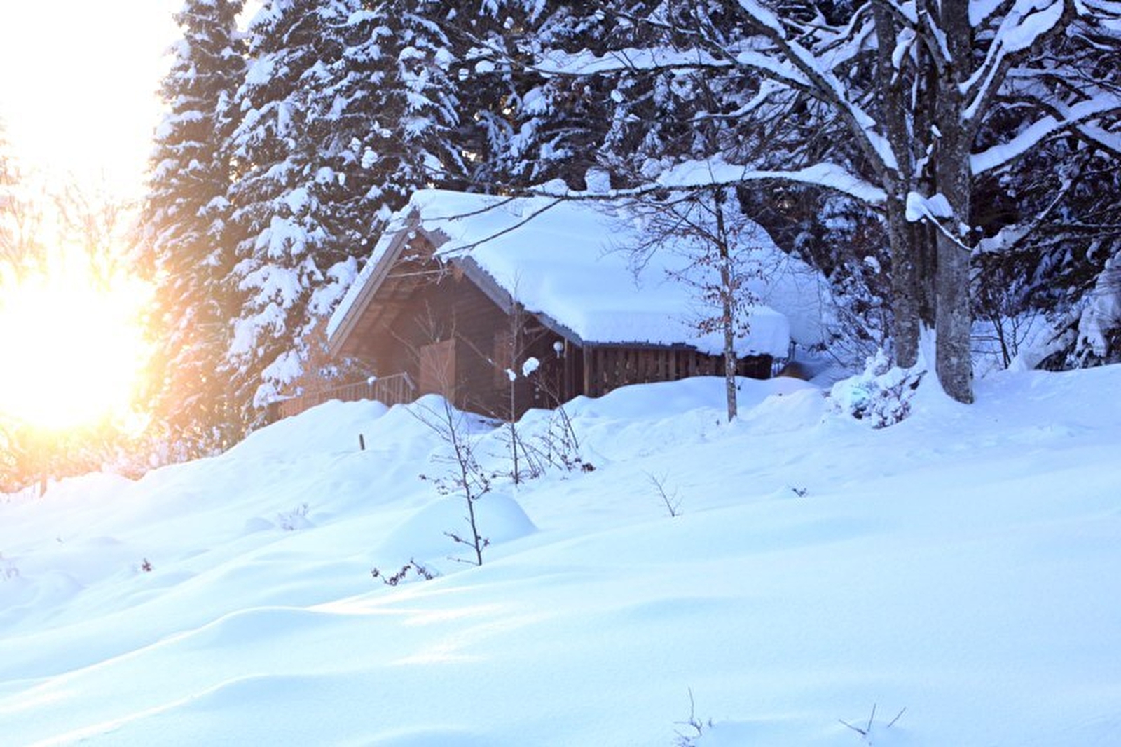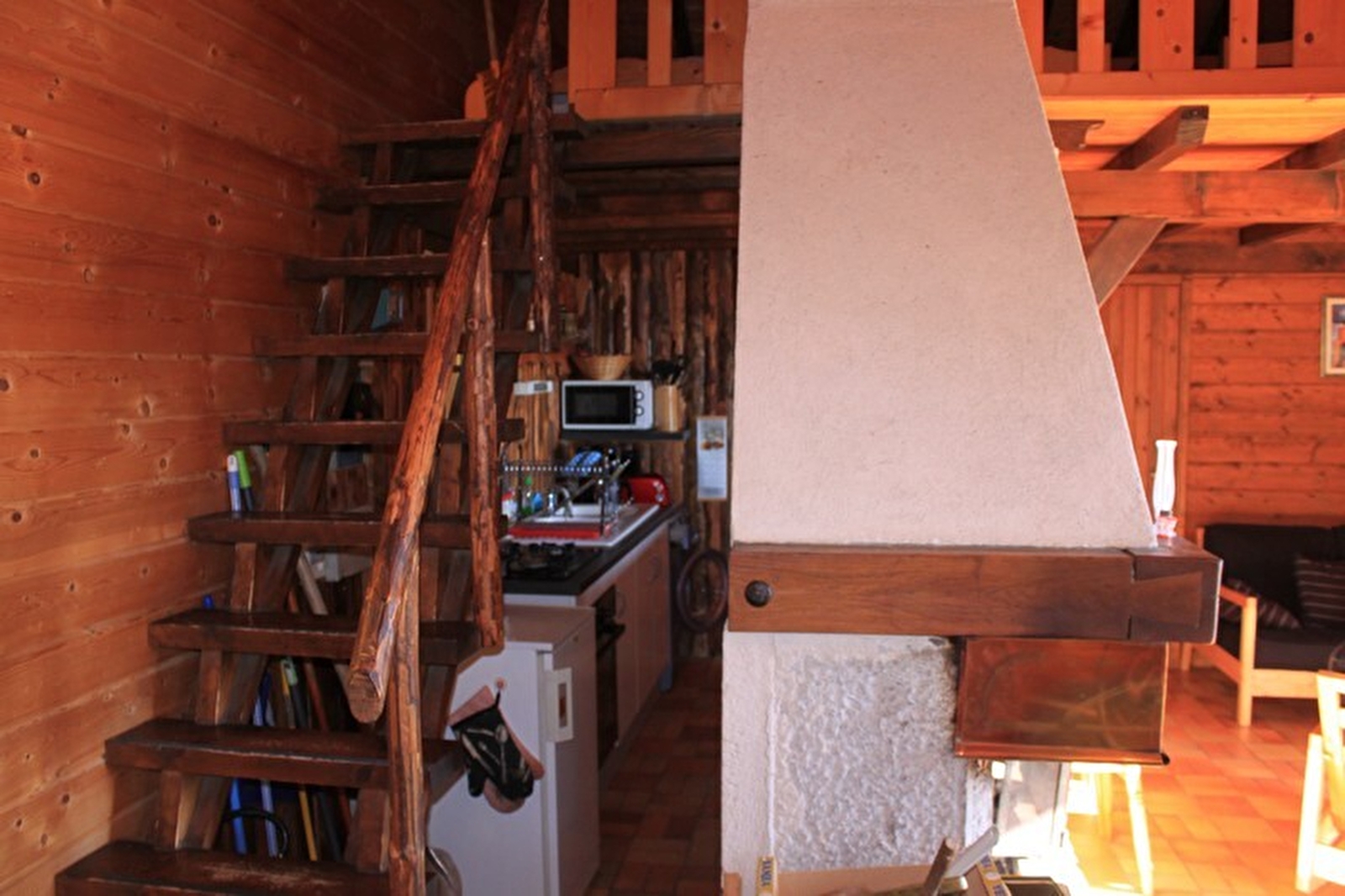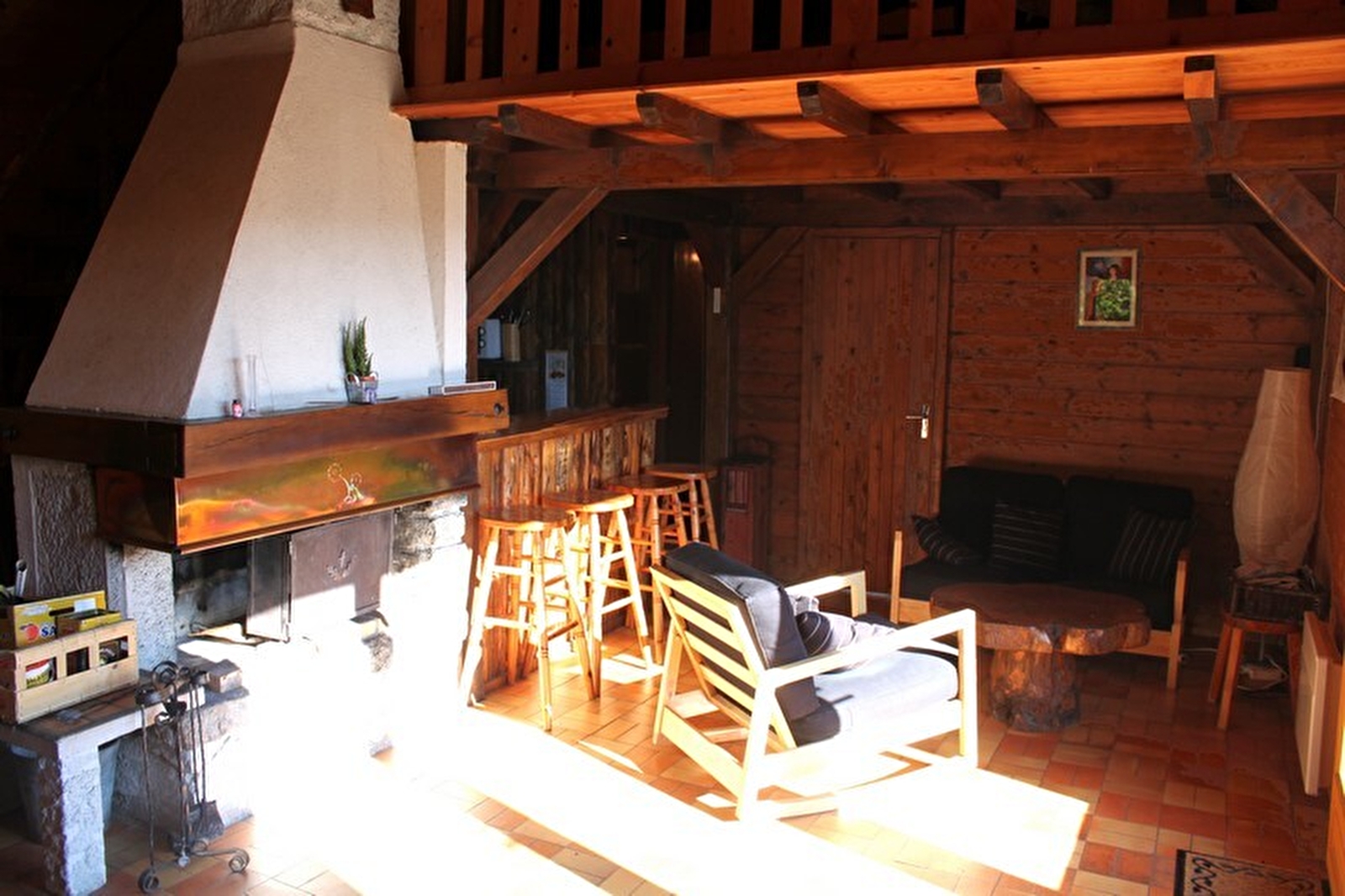 Chalet indépendant. Cuisine, séjour, salon. A l'étage: mezzanine 1 lit 2 pl, 2 lits 1 pl, salle d'eau, ch1: 1 lit 2 pl, terrain attenant non clos, salon de jardin, barbecue. Chauffage électrique. Charges non comprises. Possibilité d'accueillir une 5ème personne sur demande.
