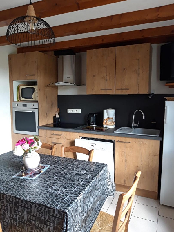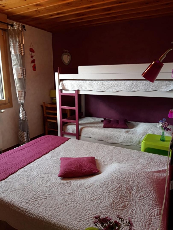 Logement au RDC de la maison des propriétaires. Cuisine-séjour, salle d'eau, WC indépendant, ch1: 1 lit 2 pl, ch2: 2 lits 1 pl, 1 lit 2 pl, terrain attenant non clos, cour, salon de jardin, jeux pour enfants. Chauffage central. Toutes charges comprises.