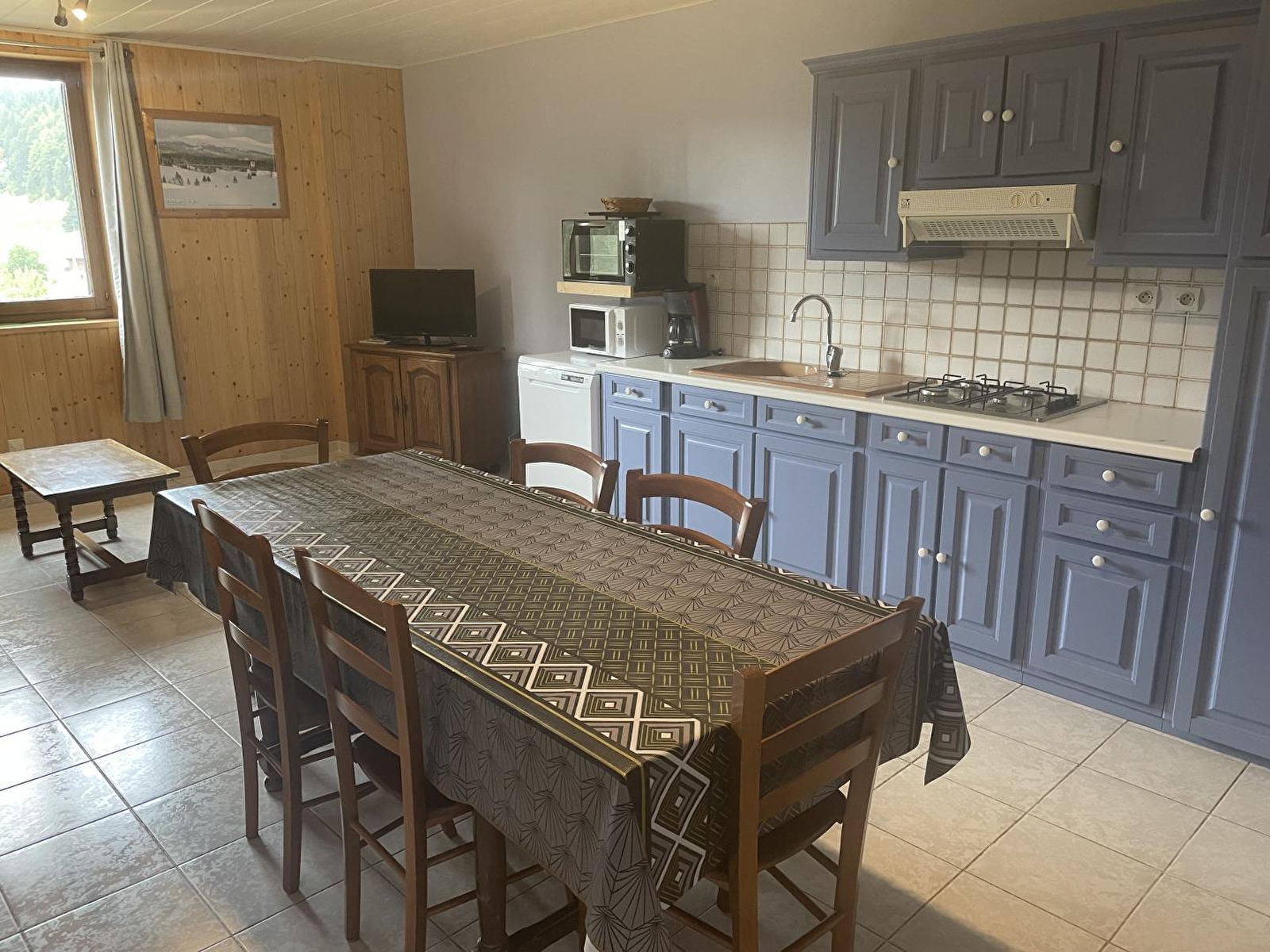 Au coeur du parc naturel régional du Haut-Jura, sur le site naturel et préservé des Hautes Combes offrant été comme hiver de splendides paysages se situe ce logement dans une maison où se trouve 3 autres gîtes. Cuisine séjour, salle de douche, wc indépendant, 1 chambre avec 1 lit 2 places, 1 chambre avec 2 lits 1 place. A l'étage: une troisième chambre avec 3 lits 1 personne, terrain attenant non clos, salon de jardin, barbecue, table de ping pong, terrain de pétanque, transats à dispo. Chauffage électrique. Forfait électricité de 130 kw en été et 200 kw en hiver par semaine inclus au tarif. Lit bébé, baignoire et chaise sur demande. Charges non comprises. En été, location de VTC et VTT électrique à 7km. Ferme à proximité avec possibilité de visite