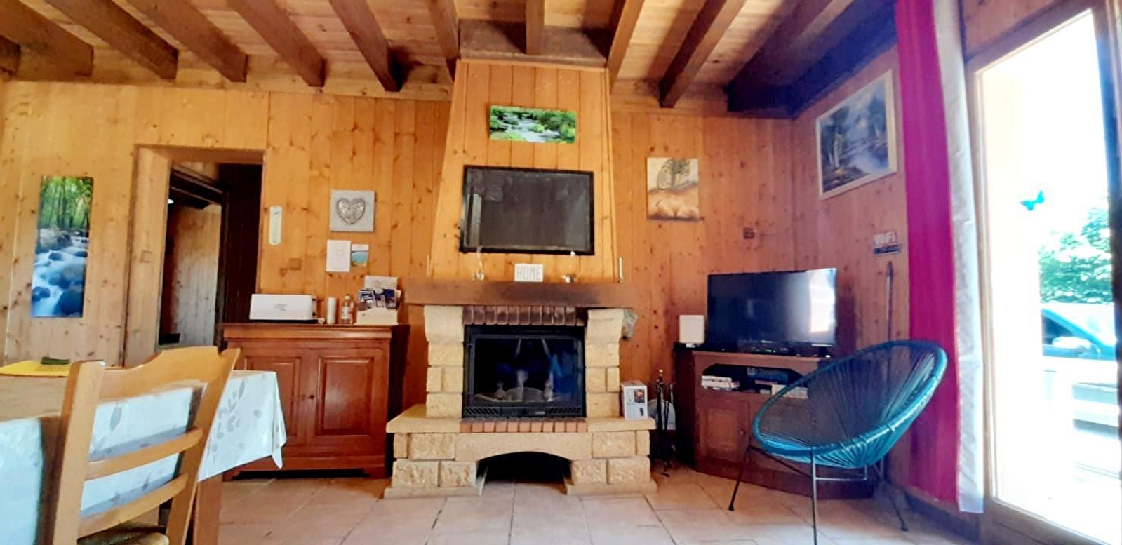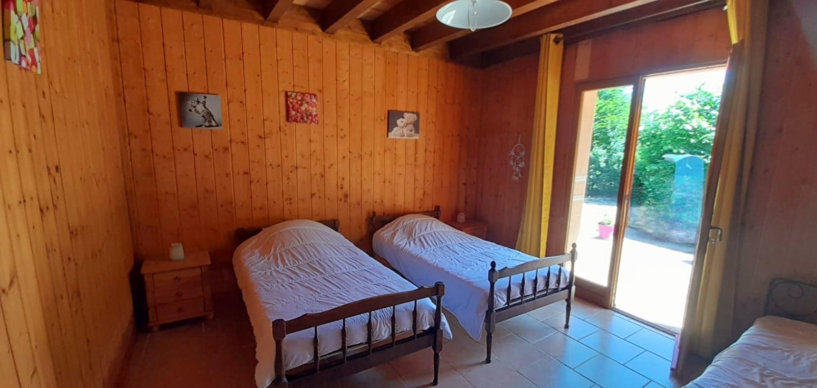 Maison indépendante avec cuisine-séjour, canapé, lecteur DVD, 1 chambre avec 1 lit 2 places et une autre avec 3 lits de 90 par 190, salle de bains avec toilettes. Cour et jardin non clos, garage, salon de jardin, barbecue et transats. Chauffage au bois (fourni gratuitement). Toutes charges comprises. Forfait ménage obligatoire (50€) avec les animaux.