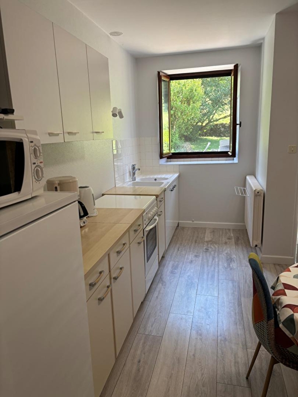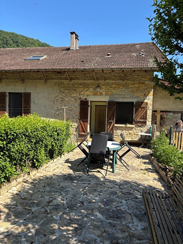 Situé dans une reculée, site Natura 2000. Proximité du vignoble de Chateau-Chalon. Logement au rez de chaussée d'une maison où se trouve un autre gîte. Cuisine-séjour, chambre avec 1 lit 2 places - chambre 1 lit 2 places et 1 lit 1 place, salle d'eau, terrain attenant clos, cour-terrasse, salon de jardin, barbecue. Chauffage central. Toutes charges comprises. Espace détente et jeux. Abri pour voiture. Départ de sentiers de randonnées. Les draps et linge de toilette ne sont pas fournis.