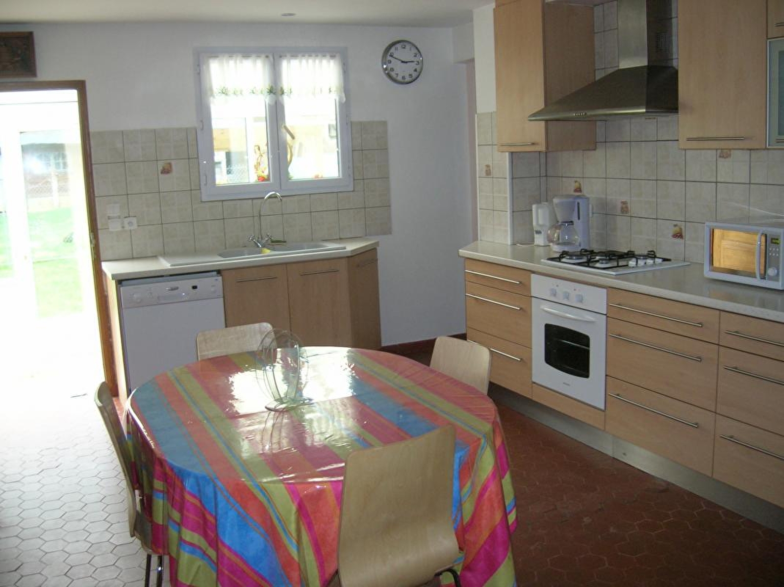 Maison indépendante de plain pied située à 1.5km de centre de Dole, dans un quartier très calme en pleine nature. Vaste cuisine intégrée, congélateur, séjour-salon, TV, canapé convertible, CH1: 2 lits 1 pl + 1 lit 1 pl, CH2: 1 lit 2 pl, chaise et lit bébé, salle d'eau, WC séparé. Chauffage central au fioul, cheminée, bois fourni gratuitement. Petite véranda avec 2e canapé convertible, terrasse, cour, jardin, salon de jardin, barbecue. Terrain attenant clos. Location de draps: 8euros /paire. Forfait ménage: 50 euros. Possibilité d'accueillir 6 personnes sur demande auprès du propriétaire.