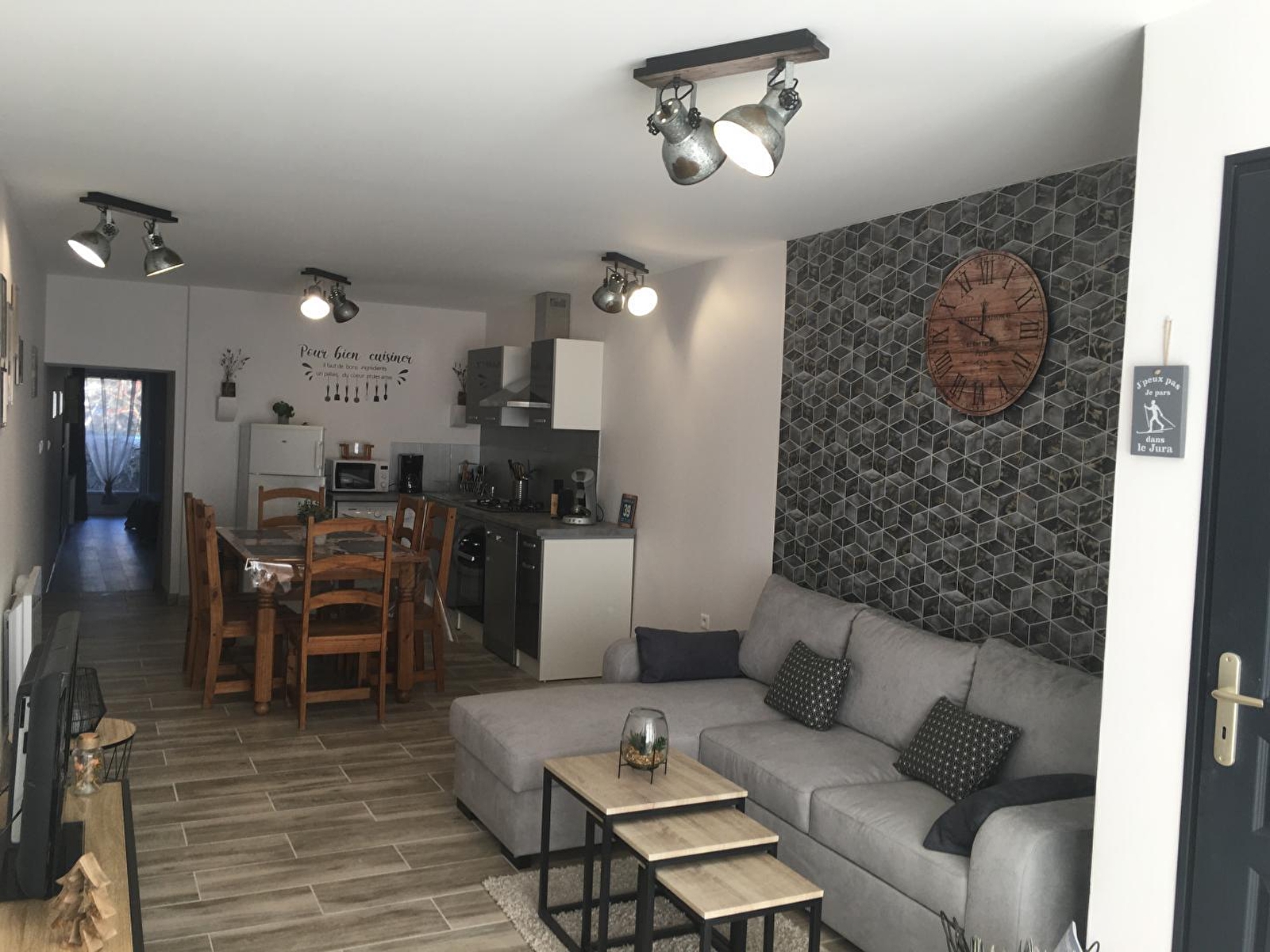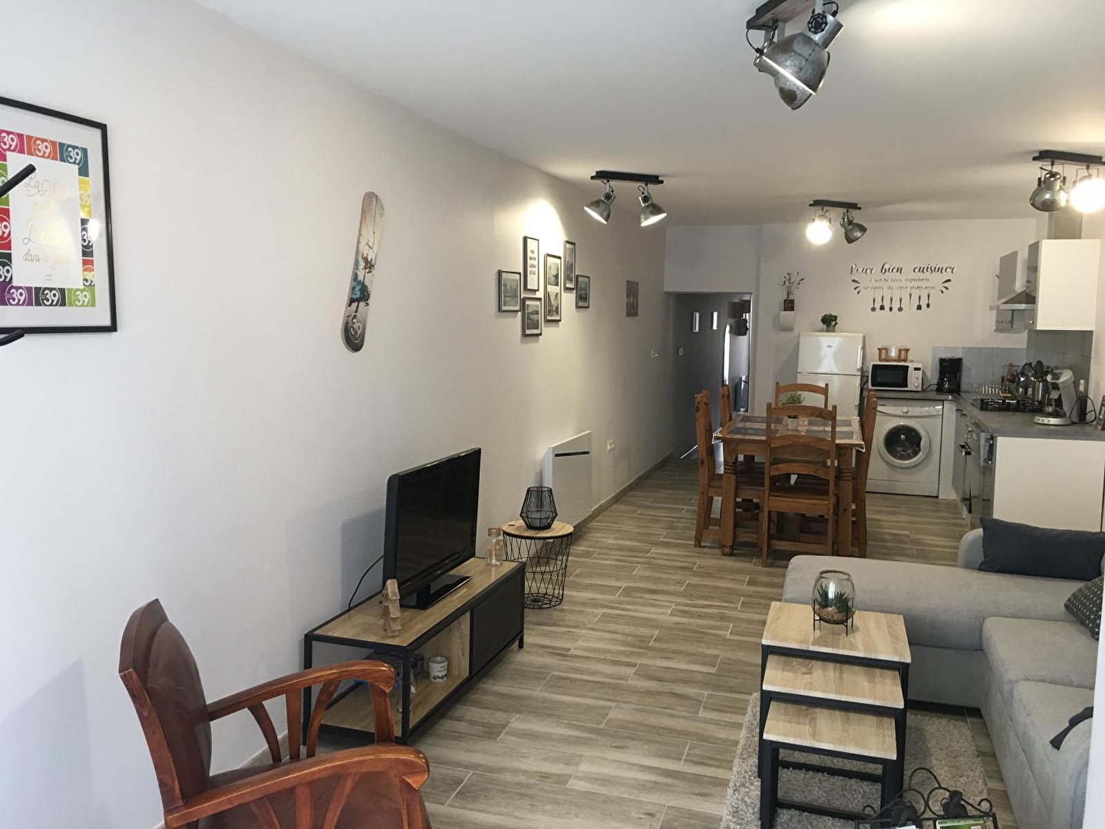 Appartement lumineux au cœur de la région des Lacs, au centre ville de Clairvaux les lacs, situé au RDC d'une maison mitoyenne avec celle des propriétaires. Pièce à vivre avec Espace détente: TV écran plat, lecteur DVD et canapé convertible, coin cuisine équipée, cafetière senseo. Salle d'eau, chambre avec 1 lit 2 pl ouvrant sur l'espace extérieur : grande terrasse, salon de jardin, barbecue. Emplacement pour voiture à proximité. Pour votre plus grand confort les lits seront faits à votre arrivée et les linges de toilette sont fournis. Équipement bébé sur demande. Wifi. chauffage électrique. Possibilité de location de 2 VTT au tarif de 50 euros