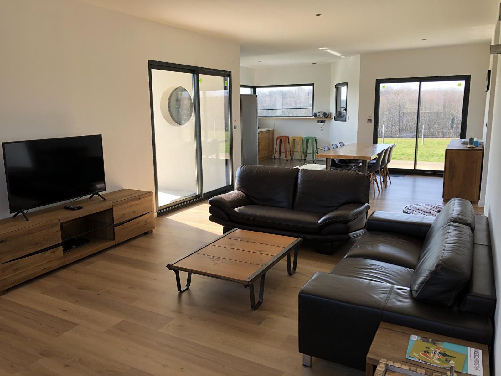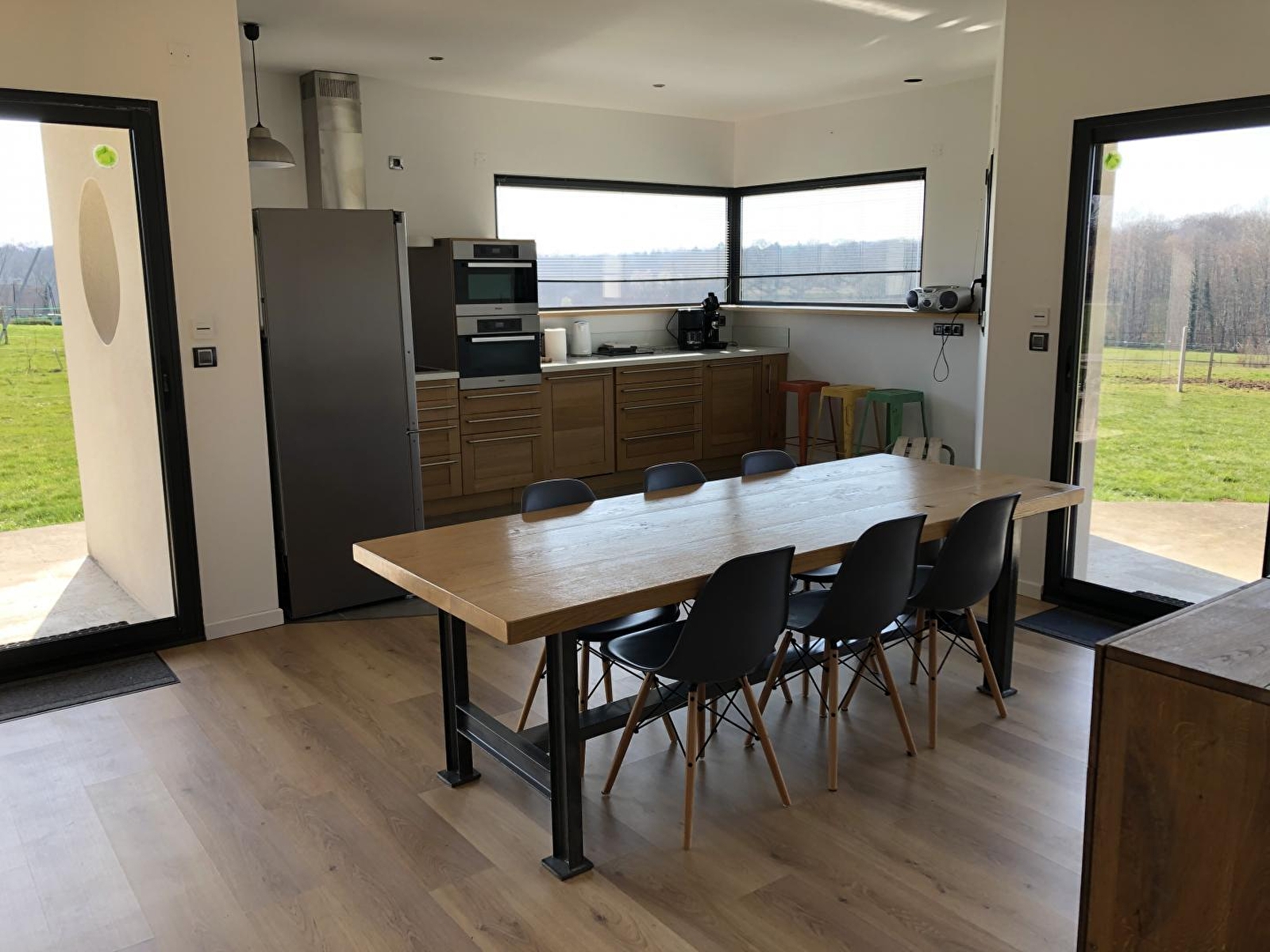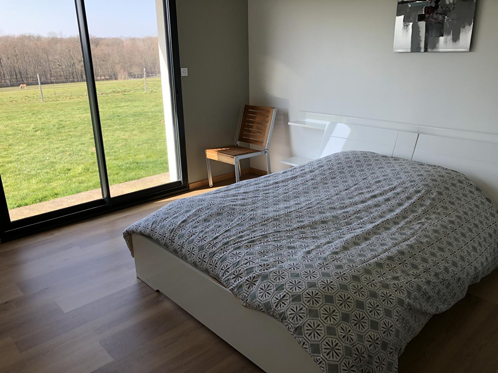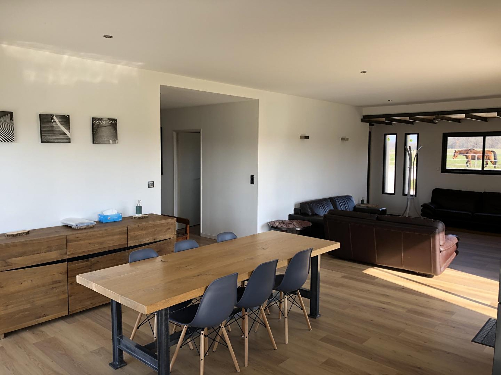 Venez profiter de cette belle maison indépendante de plain pied située en pleine nature et à proximité de nombreux sentiers de randonnées. Vous disposerez d'une grande pièce à vivre avec salon, salle à manger et vaste cuisine lumineuse. Ch1 : 1 lit 2 places, Ch2 : 3 lits 1 place, salle d'eau (douche grandes dimensions), WC indépendant. Grand terrain attenant non clos entouré d'un prés où vous pourrez admirer les chevaux des propriétaires. Un gîte lumineux et agréable à découvrir absolument !