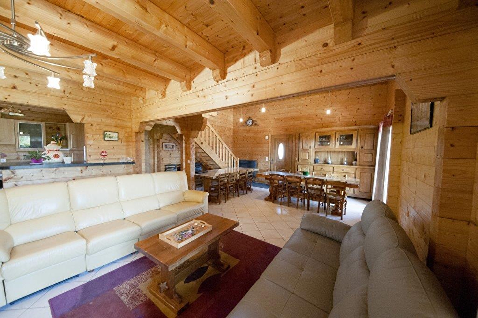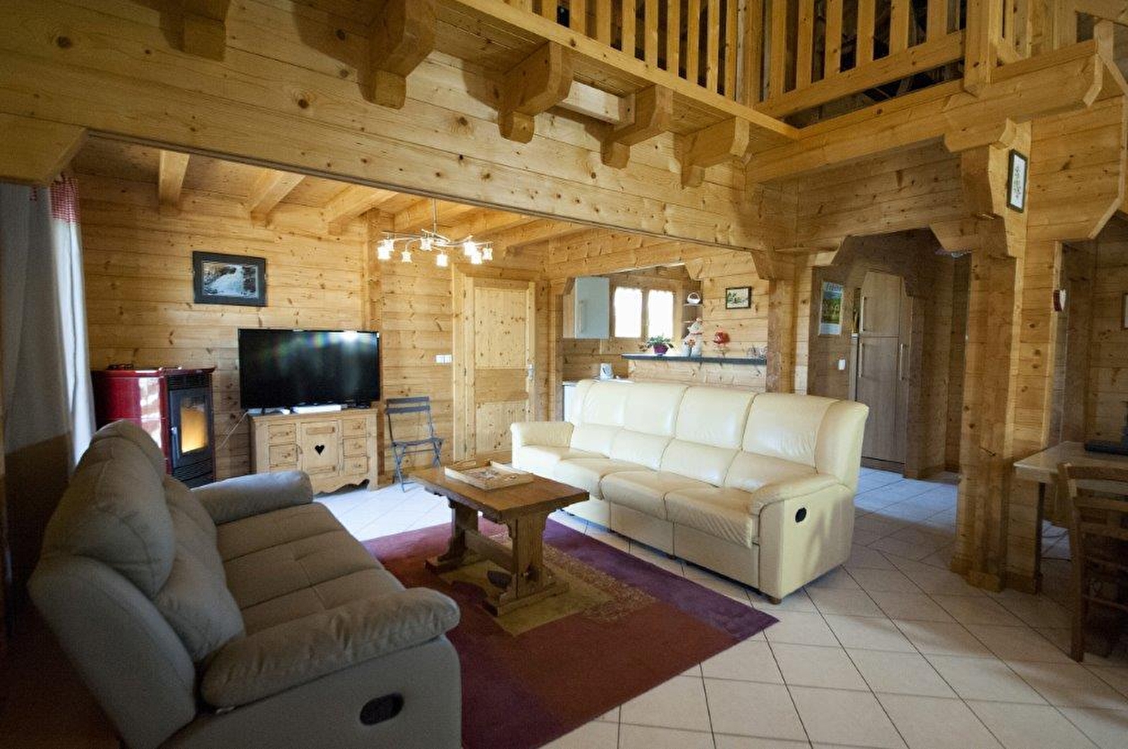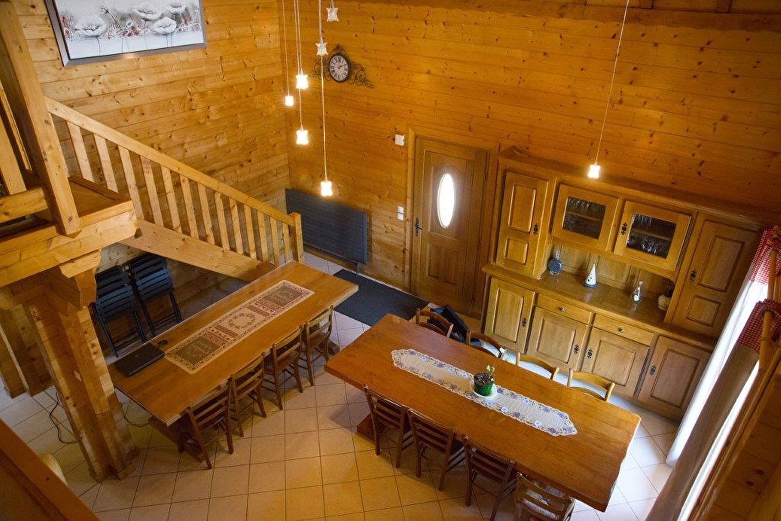 Chalet situé à quelques kilomètres de nombreux lacs et cascades, sentiers de randonnée et autres sites touristiques incontournables ! Une grande pièce à vivre lumineuse avec cuisine ouverte sur salon et salle à manger, cellier avec lave-linge et sèche-linge, une salle de bain avec baignoire, wc indépendant, 3 chambres ( une chambre avec 2 lits 1 place et 2 autres avec chacune 1 lit 2 places dont une qui dispose d'une douche avec lavabo). A l'étage : une mezzanine avec baby-foot, 2 chambres avec chacune 1 lit 2 places et 1 lit 1 place, salle d'eau avec douche, wc indépendant. Vous pourrez profiter de la grande terrasse avec salon de jardin et barbecue. Abri couvert pour 4 voitures. Chauffage : un sac de granulés fourni par jour. Le sac supplémentaire sera facturé 9.00€