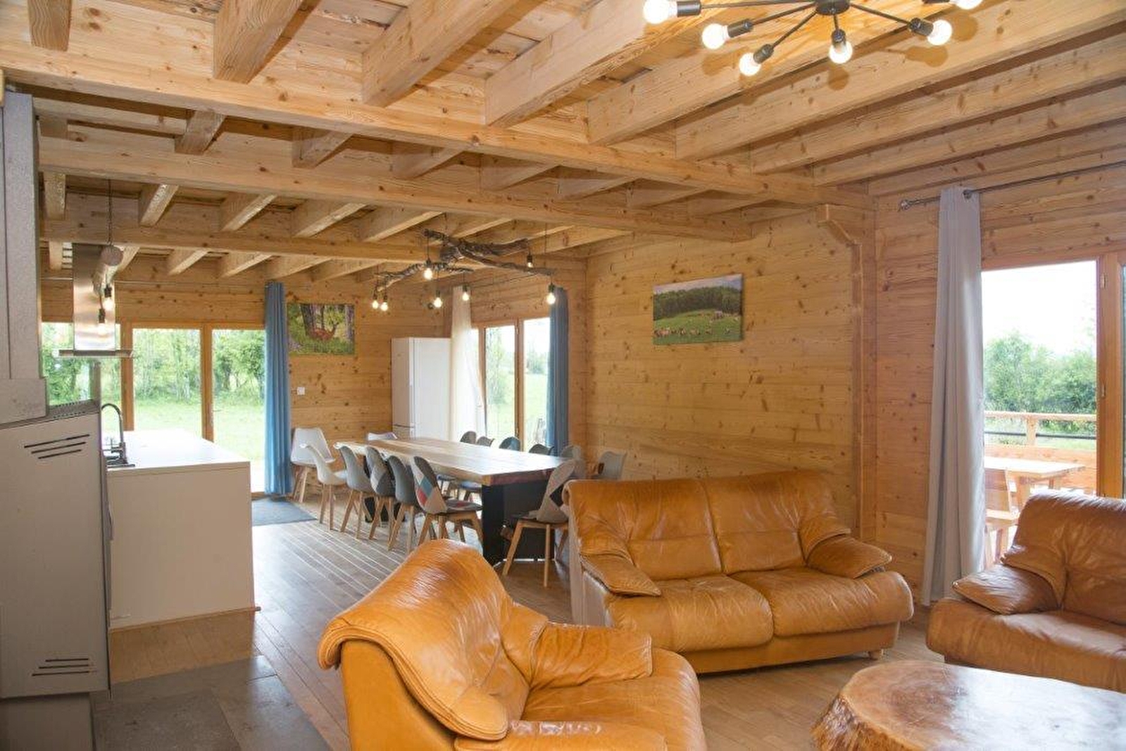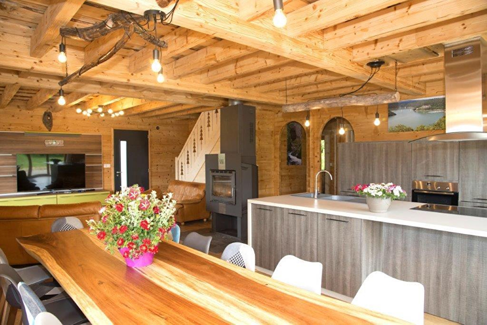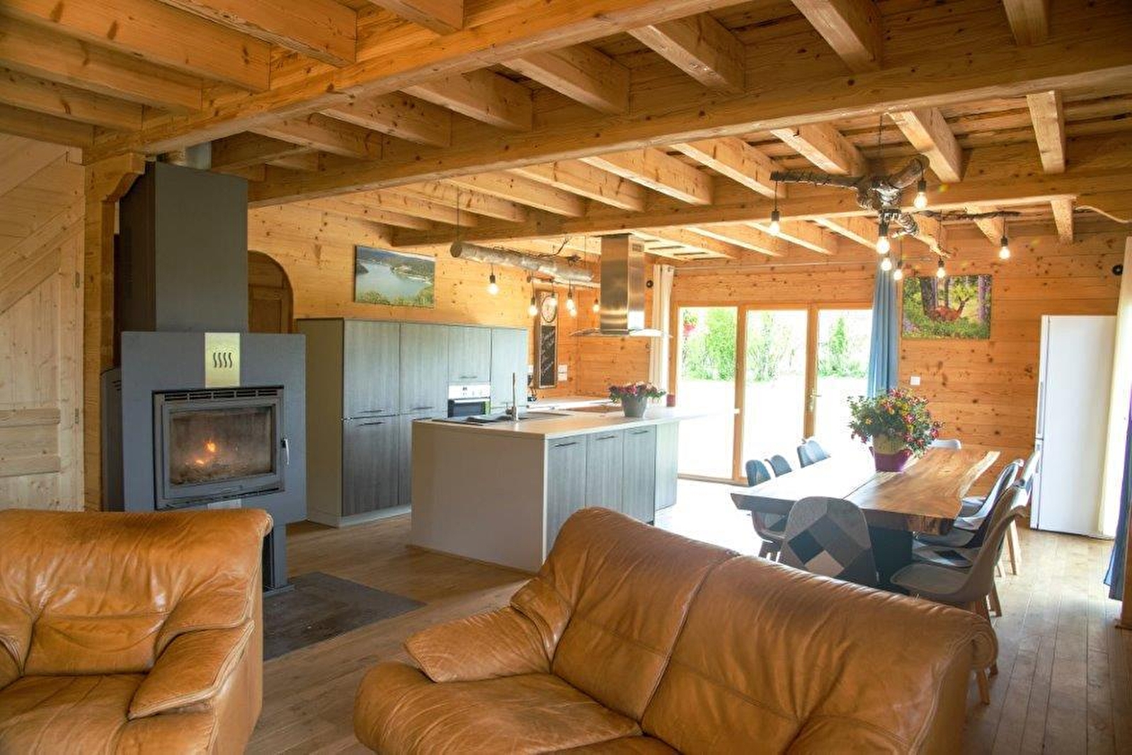 A quelques kilomètres des lacs, cascades et autres sites touristiques, ce chalet sera le lieu idéal pour passer d'agréables vacances en famille ou entre amis. Il se compose d'une grande pièce à vivre avec accès à une terrasse extérieure, avec cuisine équipée, salle à manger avec poêle à bois, et d'un espace salon avec canapé et TV. Au rez de chaussée, vous retrouverez une chambre avec 1 lit double (140*190), une salle d'eau avec douche et 1 WC indépendant, une seconde chambre avec 1 lit double (140*190) et salle d'eau avec douche. A l'étage, une mezzanine avec baby-foot, une chambre avec 1 lit double (140*190), une salle de bain avec baignoire et WC, deux chambres avec 3 lits simples (90*190) chacune avec accès au balcon et une dernière chambre avec 1 lit double (140*190) et une salle d'eau avec douche et WC. Accès 4G. Coté extérieur, vous pourrez profiter d'un jardin avec barbecue, salon de jardin... Situé à une vingtaine de minutes des lacs de Chalain et Vouglans et des célèbres Cascades du Hérisson, vous ne manquerez pas d'activités !