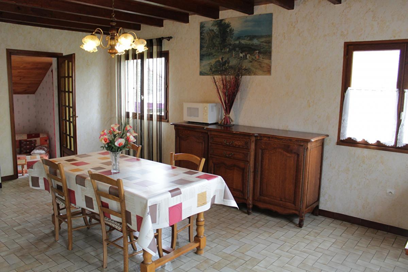 Maison indépendante, au rez de chaussée: séjour coin-cuisine, salon, salle d'eau, wc indépendants. A l'étage: ch1: 1 lit 2 pl, ch2: 2 lits 1 pl, canapé convertible, terrain attenant non clos, barbecue, salon de jardin. Chauffage central. Wifi - Toutes charges comprises. Garage à disposition. Un animal accepté, si plus d'animaux demander aux propriétaires