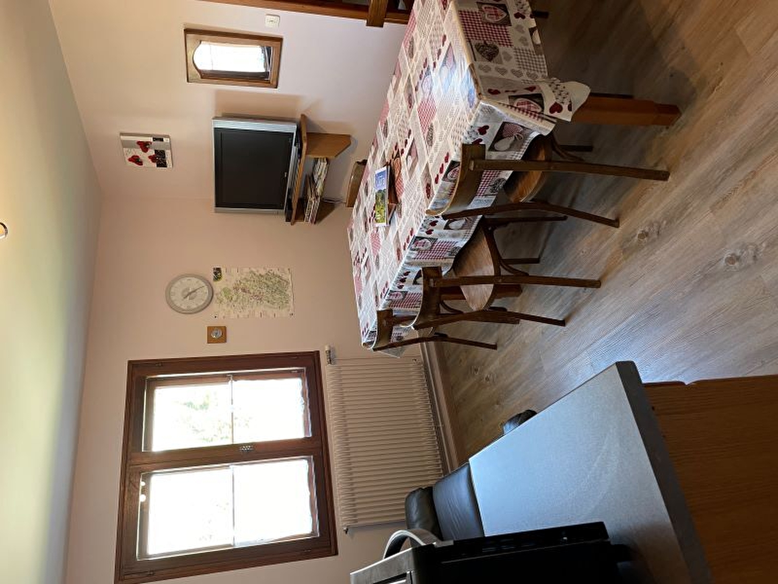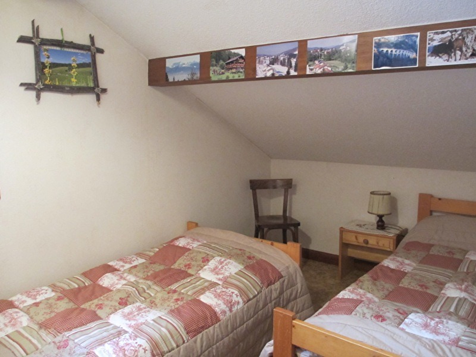 Logement au 2ème étage. Cuisine séjour, salle d'eau avec wc, ch1: 1 lit 2 pl, 1 lit 1 pl, ch2: 2 lits 1 pl, terrain attenant non clos, cour, salon de jardin, barbecue. Chauffage central. Toutes charges comprises.