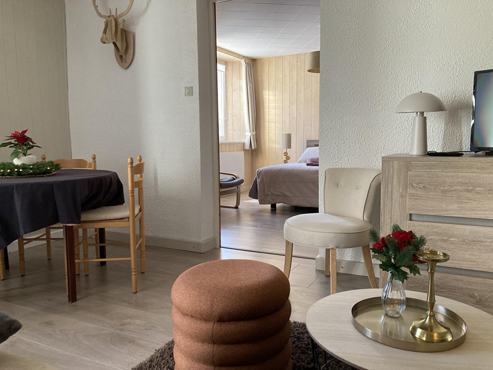 Évadez vous à la montagne dans notre gite situé en rez de jardin, dans une maison de village. Belle vue dégagée sur la nature environnante. Vous pourrez profiter d'une cuisine équipée, récemment rénovée, d'une salle d'eau, et d'une chambre spacieuse avec un lit en 160 composé de 2 matelas de 80. Le salon dispose d'un canapé, de fauteuils et d'un espace repas. Les "plus" de de notre gîte : terrain attenant privatif non clos, cour permettant de garer la voiture, salon de jardin, barbecue, local pour les vélos et les skis. A disposition : table de tennis de table, livres et jeux de société. Chauffage électrique. Toutes charges comprises. Gite proche du village (5 min à pied de la boulangerie et 10 min à pied des autres commerces). Un endroit idéal pour skier, faire de la randonnée, se baigner dans les lacs alentours et profiter du grand air. Proche des domaines skiables de Foncine, Chaux Neuve et Chapelle des Bois. Également à proximité de la Suisse si vous souhaitez visiter Lausanne ou Genève.