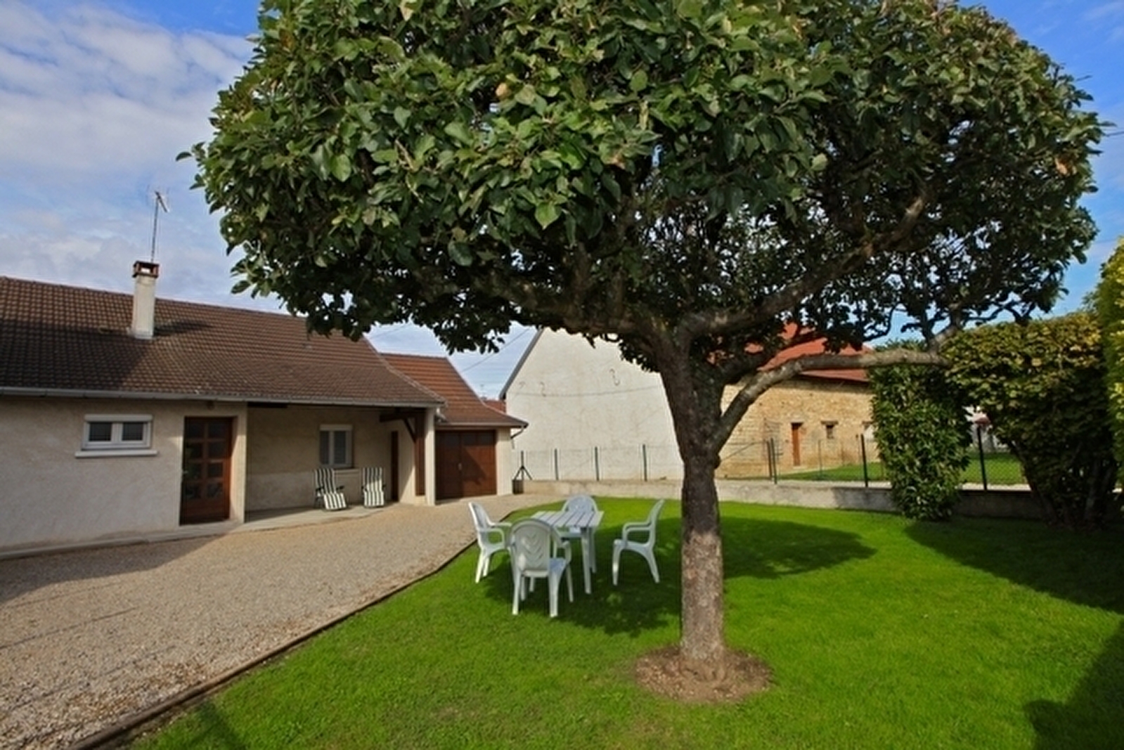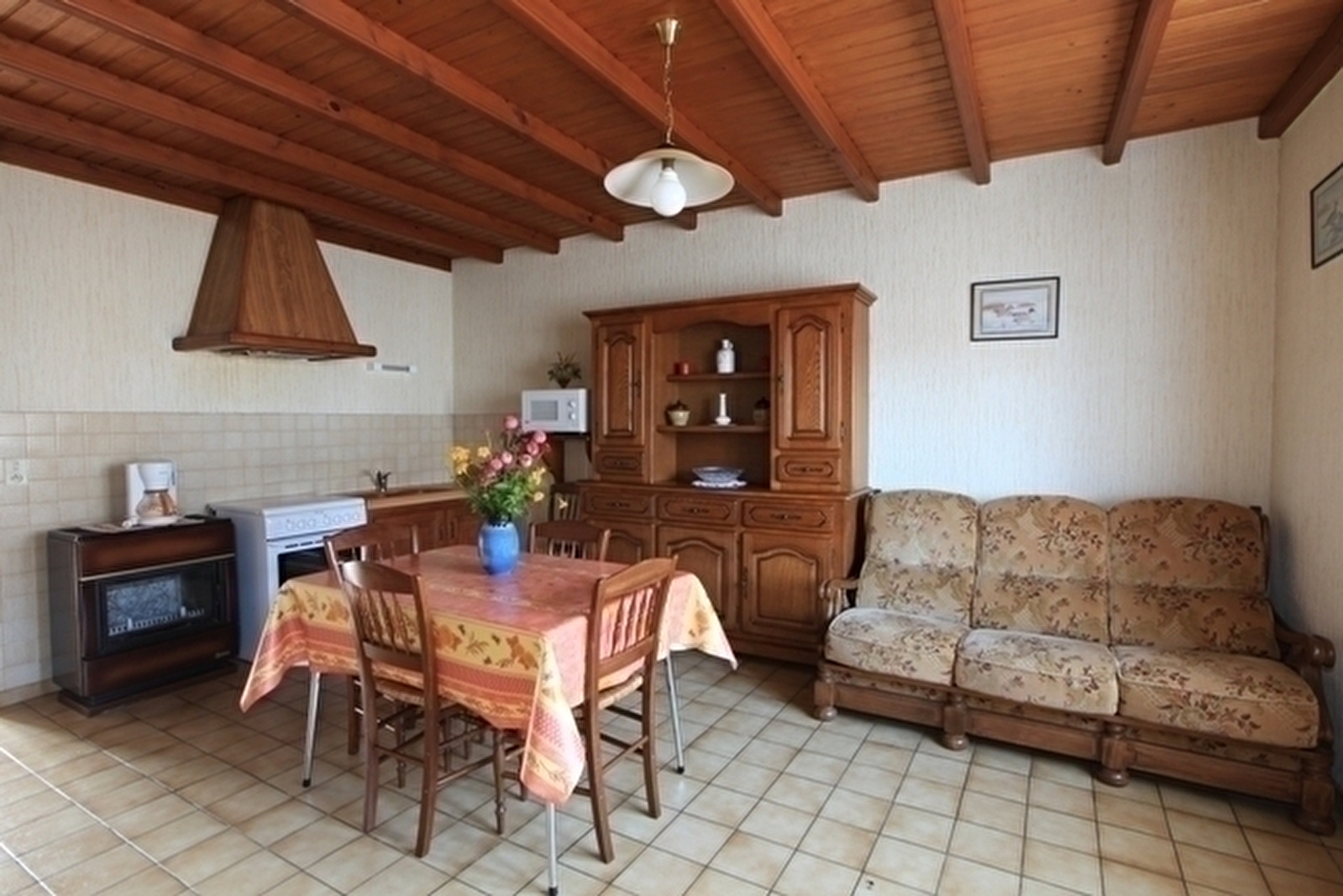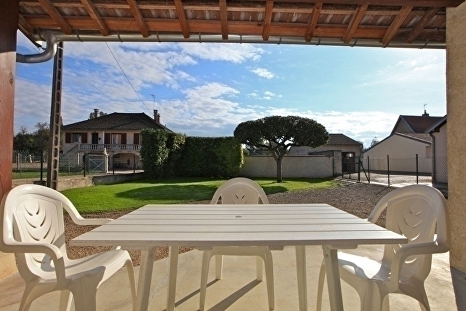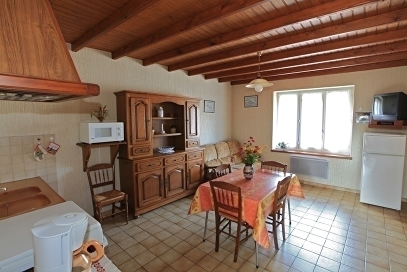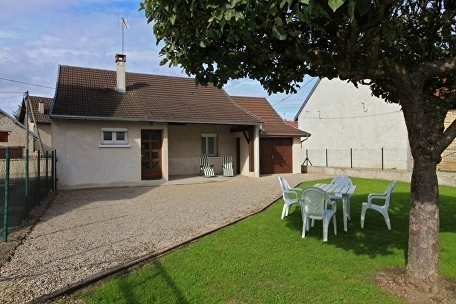Maison indépendante de plain-pied: cuisine séjour avec canapé convertible ch1: 1 lit 2 pl, ch2: 1 lit 2 pl, 1 lit 1 pl, salle de bains avec wc intégrés. Cour et jardin clos, salon de jardin, barbecue. Chauffage électrique. Charges non comprises.