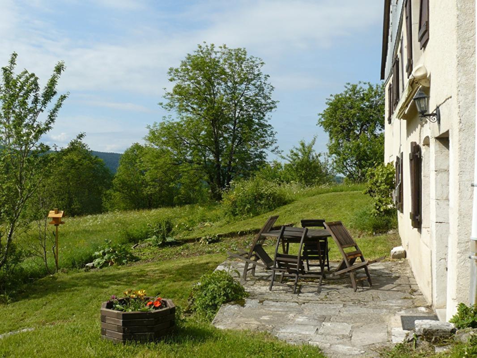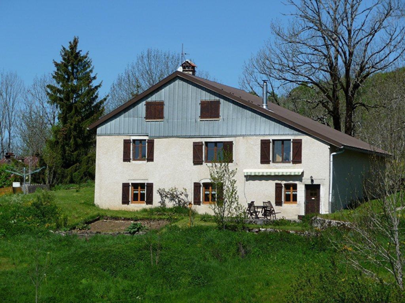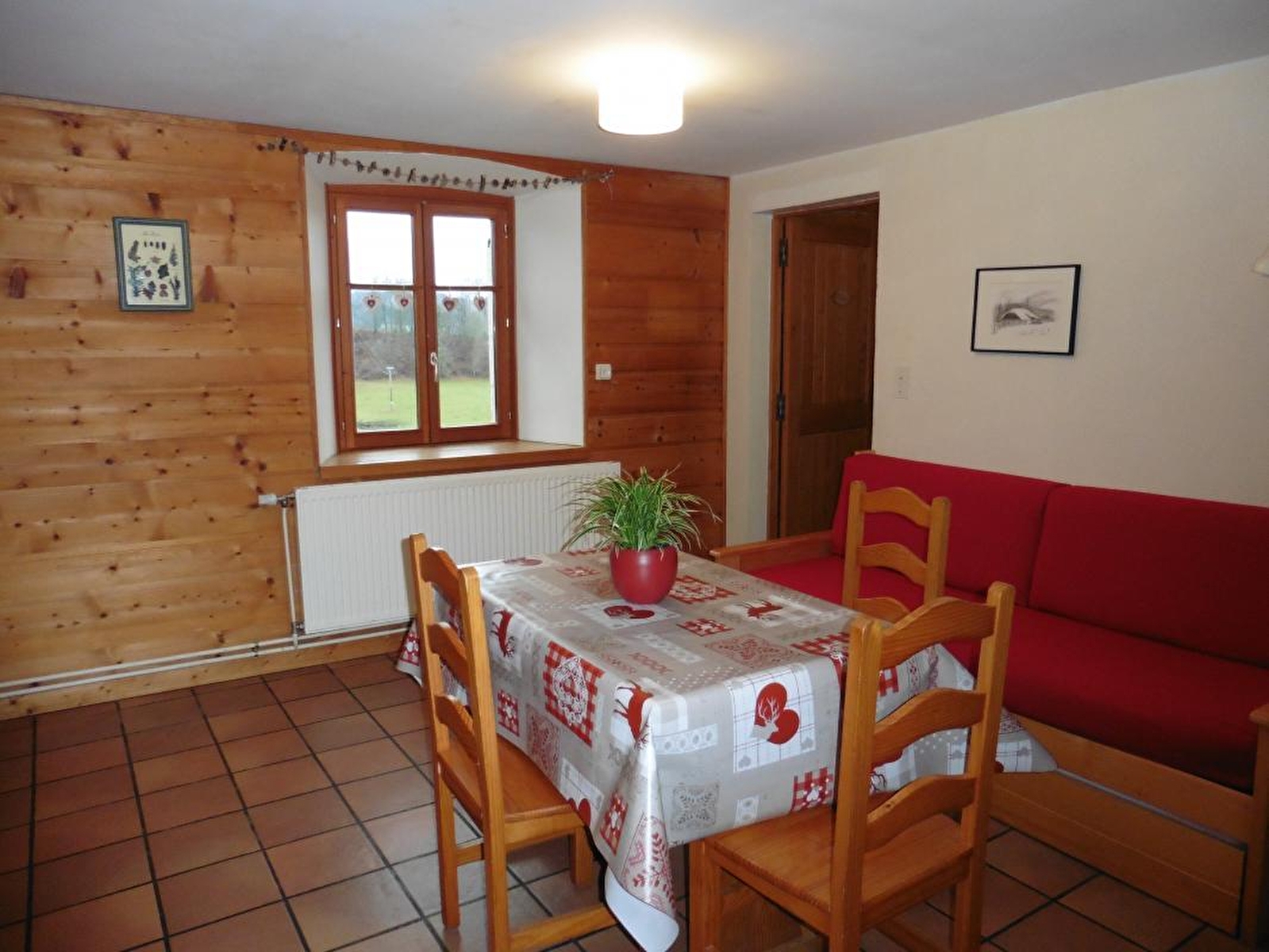 Logement au RDC. Cuisine-séjour, salle d'eau, WC séparé, ch1: 1 lit 2 pl, 2 lits 1 pl, terrain attenant, cour, salon de jardin, barbecue. Chauffage central aux granulés de bois et production d'électricité par 36m² de panneaux solaires photovoltaïques. Toutes charges comprises. Label WWF. Garage à disposition en hiver. Production d'eau chaude par panneaux solaires thermiques et récupérateur d'eau de pluie pour toilettes.