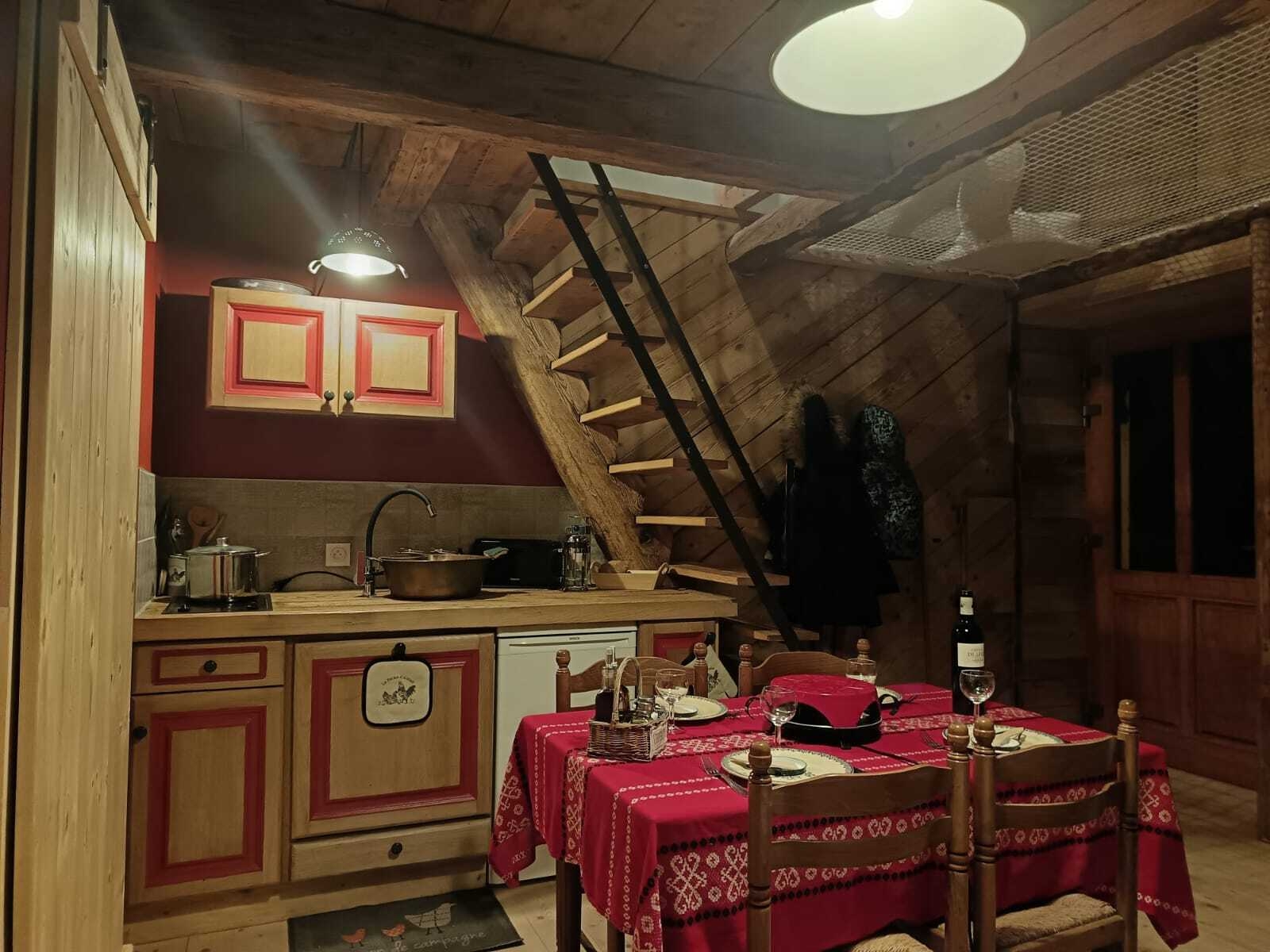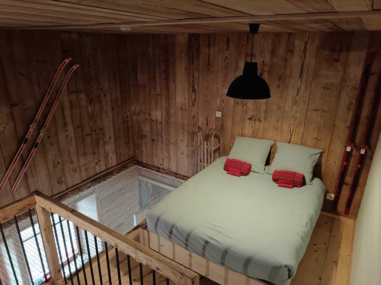 Nous proposons à la location un studio en duplex d'environ 30m² dans notre gîte à la ferme pour 4 personnes maximum. A votre disposition, une pièce à vivre au rez-de-chaussée avec une kitchenette équipée et une banquette convertible double ainsi qu'une salle de bains avec douche à l'italienne (linge de toilettes inclus) et toilettes accessibles aux Personnes à Mobilité Réduite. En mezzanine, vous trouverez un coin nuit avec un lit double et pourrez vous reposer dans le coin lecture suspendu.