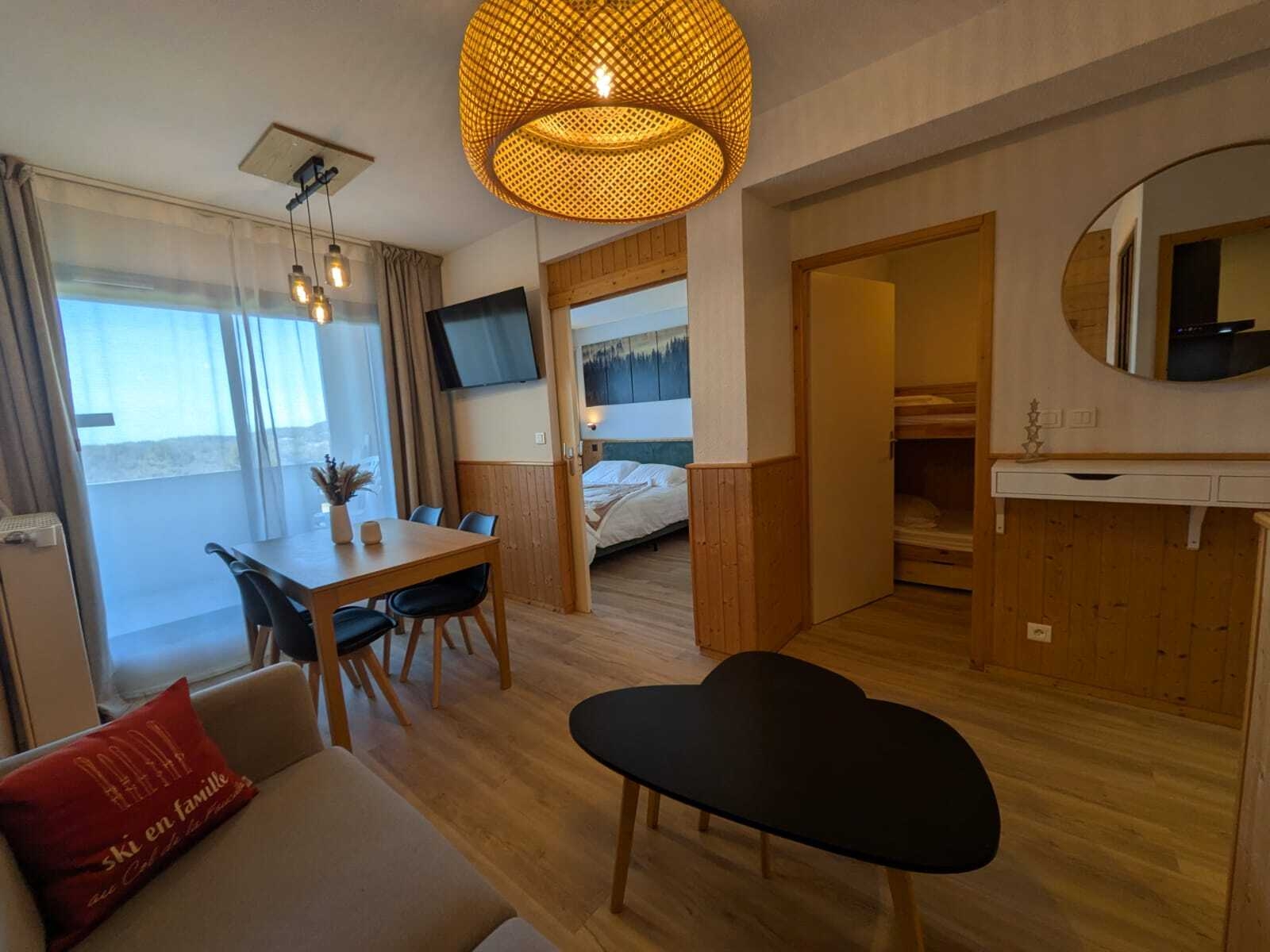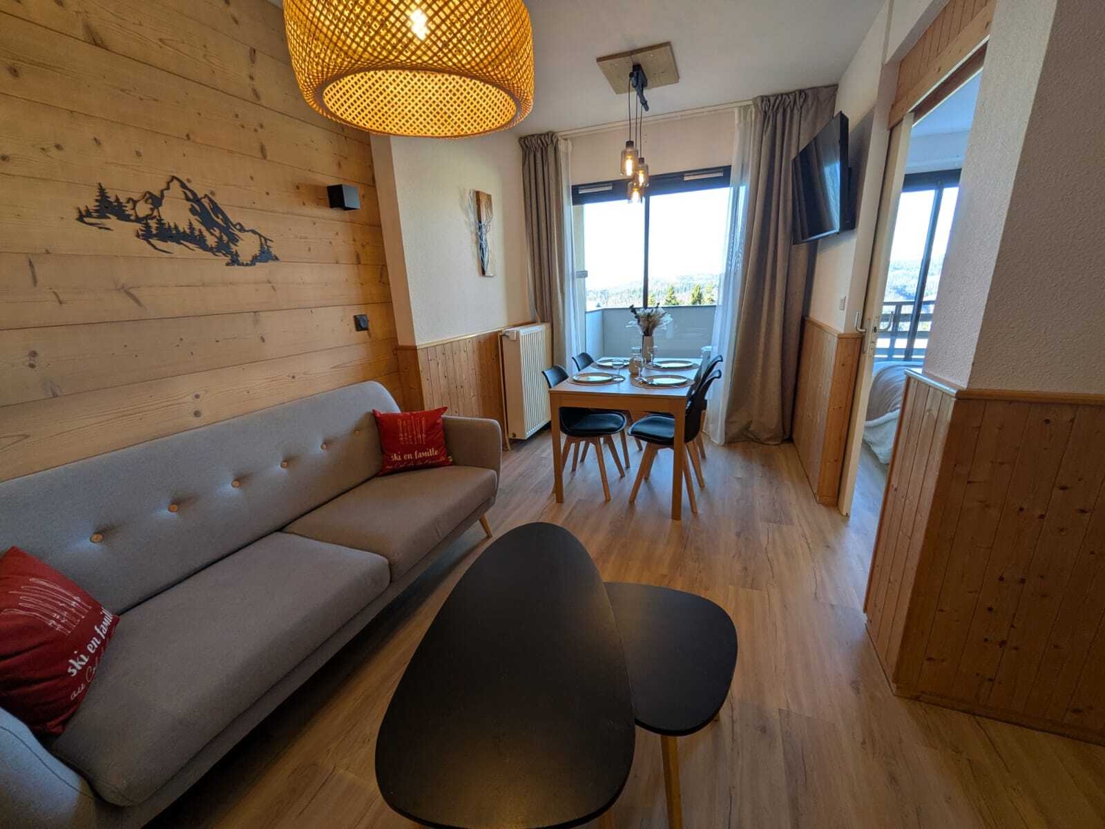 Cet appartement décoré avec soin allie confort moderne et charme montagnard, parfait pour un séjour en famille, entre amis ou à deux.