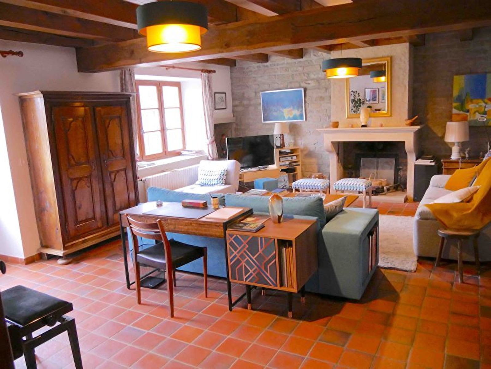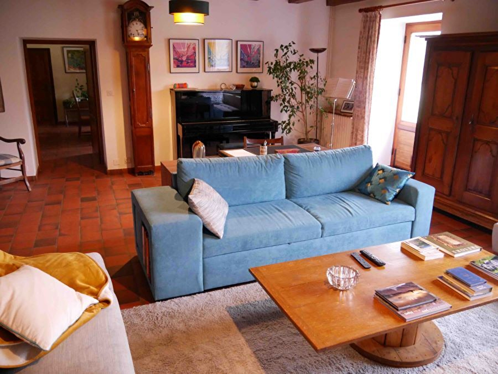 Laissez-vous charmer par ce gîte mitoyen à l'esprit authentique (sols avec cadettes, tomettes, fourneau) qui se compose au RDC d'un grand hall d'accueil, d'une cuisine toute équipée, d'une salle à manger, d'un salon avec TV, bibliothèque et piano, d'un salle d'eau avec douche et d'un WC indépendant. A l'étage, 1 petit dressing, une salle de bain avec baignoire, 1 WC indépendant et 4 chambres : 2 avec lit double en 180*200, une avec lit double en 140*190 et la dernière avec 4 lits simples. Côté extérieur, vous pourrez profiter dune belle et grande terrasse (dont une partie est abritée) avec salon de jardin, transats et barbecue et d'un vaste terrain entièrement clos. Idéalement situé pour visiter Baume-les-Messieurs et Chateau-Chalon, classés plus beau village de France, ou pour découvrir la région des lacs, avec le lac de Chalain (à 20 mns) Note : l'occupation d'un lit double par une seule personne sera facturée 24 euros