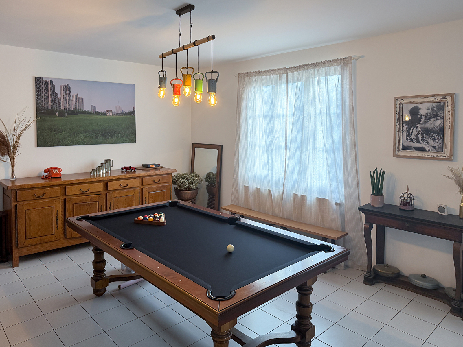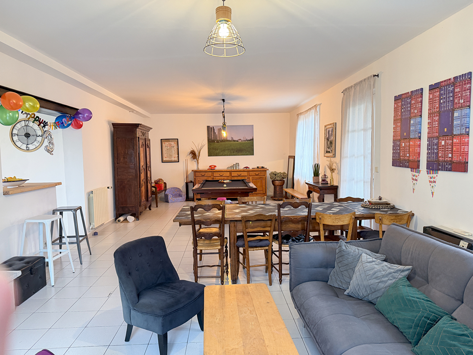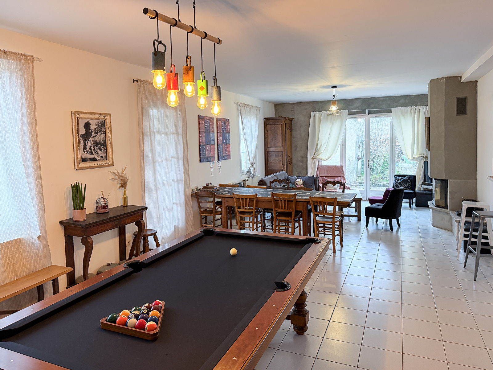 Avec 5 chambres et 2 salles de bains, chacun trouve facilement son espace. La grande pièce de vie, au coeur de la maison, réunit cheminée, repas conviviaux et billard.