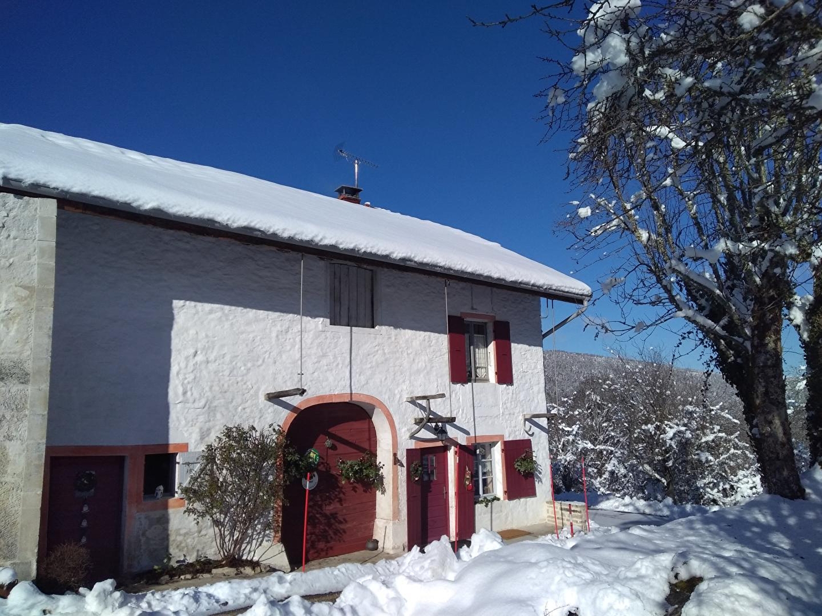 Bienvenue à la Césarine, ferme traditionnelle du Haut-Jura, indépendante, ouverte sur un très large espace arboré et fleuri, située dans un hameau très calme le long du GR9. Restaurée dans le respect du bâti ancien avec des matériaux naturels, ce gîte vous offrira un cadre de vie authentique dans une ambiance chaleureuse et confortable. Chauffage principal au bois (forfait bois payant et possibilité de complément électrique si besoin). Au RDC: sas d'entrée/terrasse intérieure; grande cuisine et salle à manger, salon (TV, lecteur DVD, bibliothèque régionaliste), salle de bain avec wc. A l'étage, une première chambre avec 1 lit 2 places et une seconde composée d'1 lit 2 places ainsi qu'1 lit 1 pl. (les lits sont faits à l'arrivée). Très grand terrain attenant non clos, terrasses, salons de jardin, barbecue, coin nature. Gîte non fumeur Forfait chauffage (montant suivant les saisons). Parking privé sur place et volets occultant dans les chambres