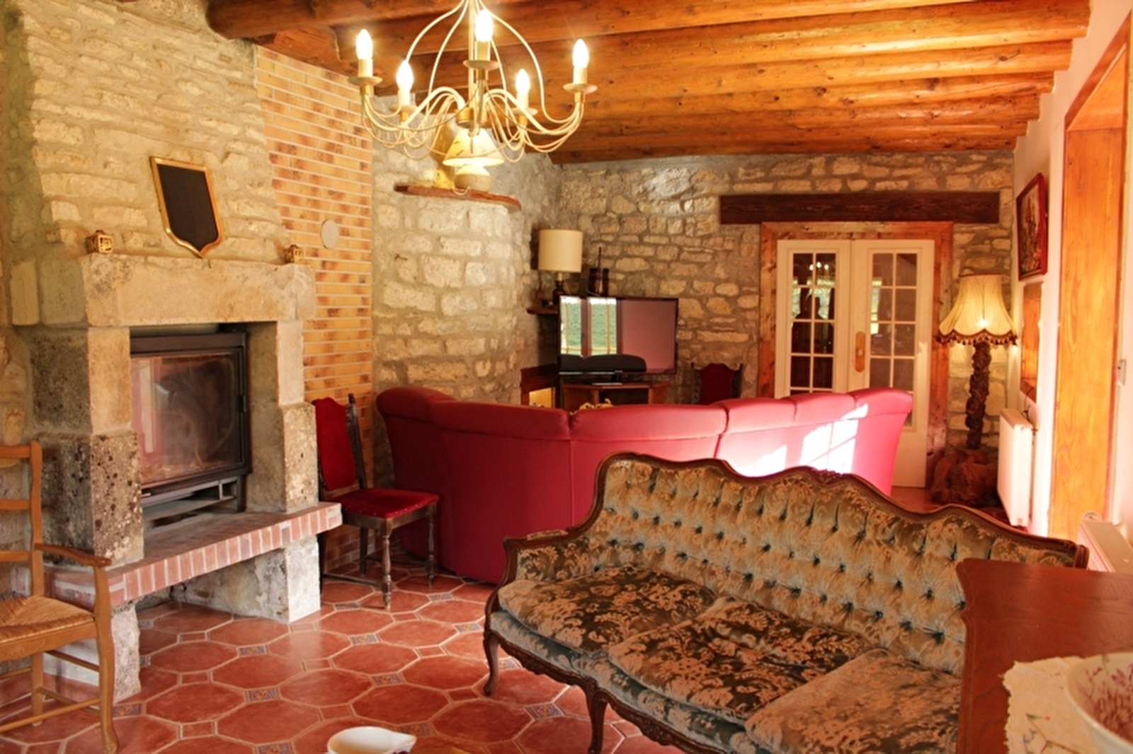 Maison indépendante de caractère, où poutres et pierres apparentes dominent, entièrement restaurée par le propriétaire. Rez de chaussée avec cuisine (réfrigérateur avec congélateur et micro-ondes) cheminée à double face (foyer visible dans la cuisine et le salon), salon, salle à manger, salle d'eau, wc. Deux terrasses, barbecue, salon de jardin. A l'étage : 4 chambres avec chacune 1 lit 2pl + une salle d'eau privative avec wc. + 1 petite chambre 2 pl (6m²), Dans une cave voutée salle de jeux avec billard babyfoot. Garage et abri couvert , chauffage central. Terrain de pétanque. Connexion internet gratuite. (Accueil un seul chien gratuit avec une caution de 50 €)