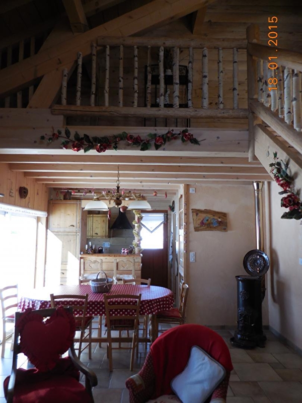 Gîte indépendant d'une capacité de 2 à 6 pers., aménagé avec des matériaux naturels garantissant un air intérieur de haute qualité. Au RDC: hall d'entrée, pièce à vivre avec salon, salle à manger, coin cuisine et cellier. Ch1: 1lit 2pl(160), Ch2: 2lits 1pl, salle d'eau, wc ind. A l'étage: mezzanine avec coin salon, lecteur dvd, Ch3: 1lit 2pl(160) et 2lits 1pl suppl, coin d'eau + WC. Terrain attenant, vue dégagée. 2 terrasses(dont une abritée) avec salon de jardin et barbecue. Abri voiture. Draps et linges de toilette fournis gratuitement. Lits faits à l'arrivée. Loc. en mid-week possible. Hors saison, tarifs variables en fonction du nombre de personne.