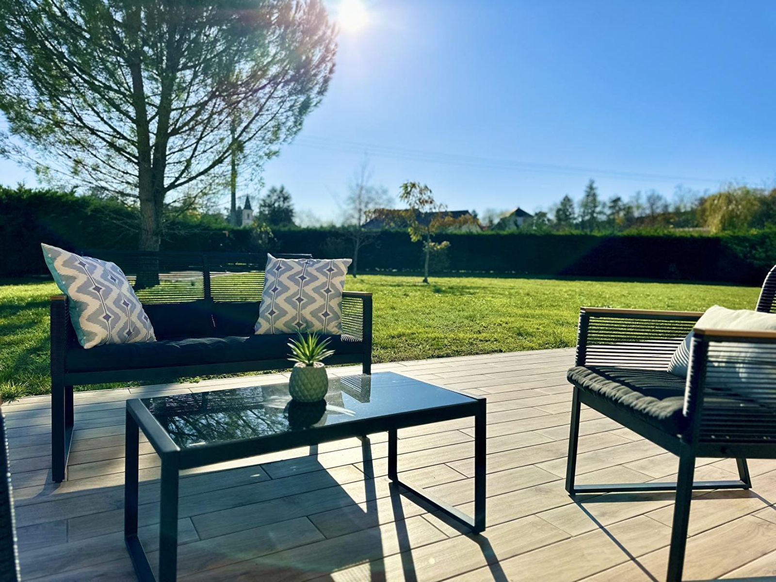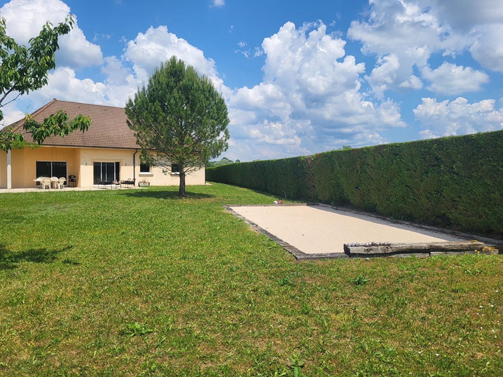 A 10 minutes de Dole, cette maison contemporaine sera le lieu idéal pour passer d'agréables vacances en famille ou entre amis. Elle se compose au RDC d'une vaste pièce de vie lumineuse - offrant un accès direct à une terrasse extérieure de 40 m² - avec cuisine toute équipée, salle à manger agrémentée d'un poêle à granulés (fourni gratuitement), d'un salon avec canapé et TV, d'une salle d'eau avec douche et WC, d'une chambre avec 2 lits simples, d'une chambre avec 1 lit double (160*200) et d'une salle de bain avec baignoire et WC. A l'étage, une grande mezzanine aménagée en salle de jeux vous permettra de vous défier autour du billard ou du baby foot. Vous disposerez également de 4 chambres : une avec 1 lit double 180*200 et 1 lit simple (90*190), 2 avec 2 lits simples (90*200) pouvant être jumelés, et une avec 1 lit double (140*190) et 2 lits simples (90*190) et d'une salle d'eau avec douche et WC. Pour votre plus grand confort, les lits seront faits à votre arrivée et les serviettes de toilettes sont fournis. Un équipement bébé complet est disponible (poussette, lit bébé, chaise haute, baignoire et pot) Côté extérieur, vous pourrez profiter d'un parc arboré de 20 ares avec terrain de pétanque. Vous prendrez également plaisir à vous prélasser sur les transats à l'ombre du pin parasol. La terrasse aménagée avec salon de jardin et barbecue promet de bons moments conviviaux. Garage ouvert permettant de rentrer 3 voitures à l'abri et sas fermé pour ranger vélos, motos... Note : un forfait ménage obligatoire d'un montant de 150 euros s'appliquera automatiquement au moment de la réservation. Le long de la véloroute reliant Dole à Mont sous Vaudrey, il suffit de traverser la cour et hop en selle! Vous pourrez vous baigner dans la Loue accessible à pied depuis le gîte en une vingtaine de minutes. Idéalement situé pour découvrir Dole et de son riche patrimoine, d'Arbois, réputée pour ses vins et Poligny capitale du Comté sont accessibles en 20 mns.