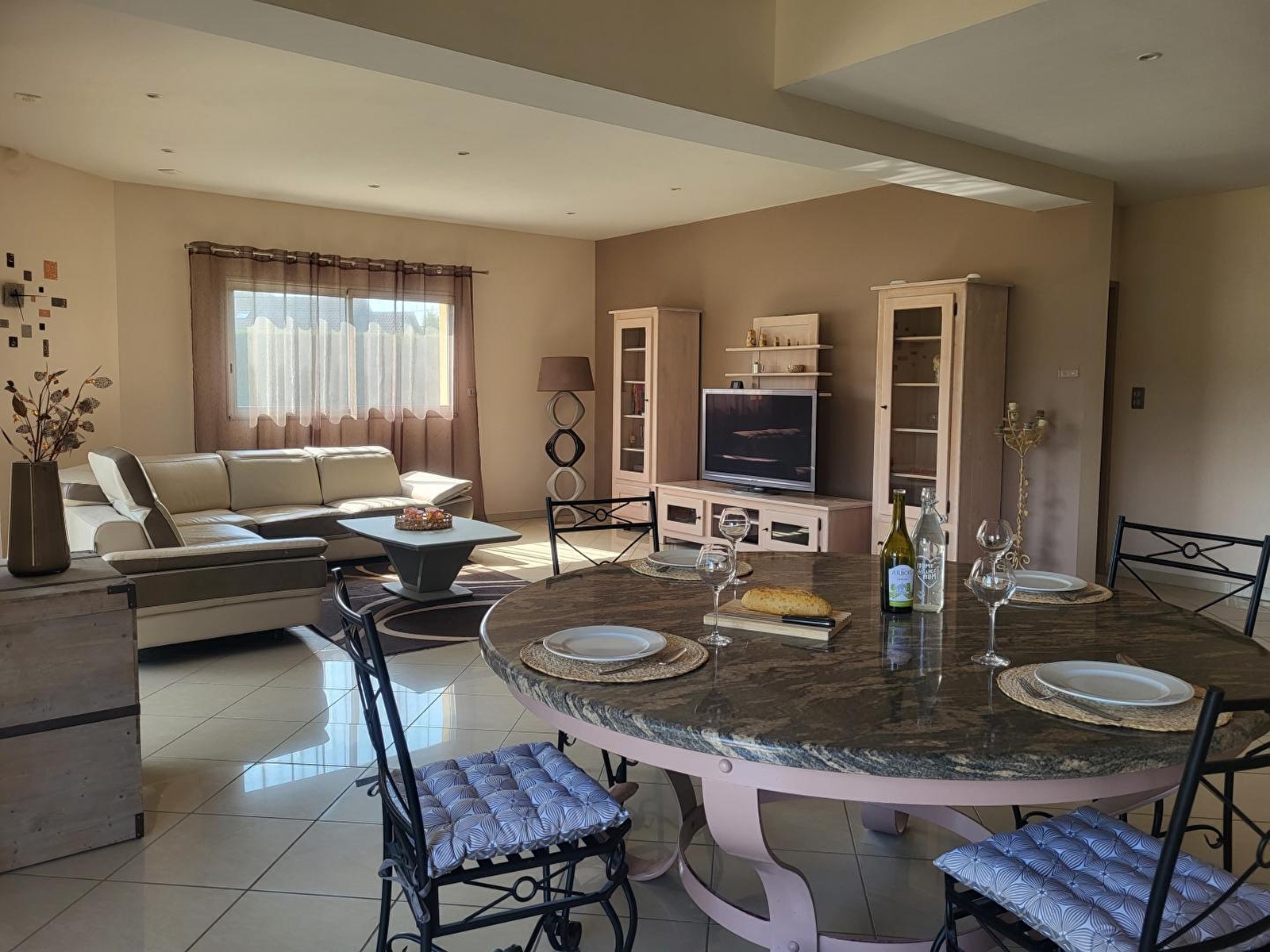 A 10 minutes de Dole, cette maison contemporaine sera le lieu idéal pour passer d'agréables vacances en famille ou entre amis. (Ce gîte peut également être réservé pour 4 personnes (G2495) ou 11 personnes (G2496) mais si vous réservez la version 6 personnes vous serez bien entendu les seuls occupants Elle se compose au RDC d'une vaste pièce de vie lumineuse - offrant un accès direct à une terrasse extérieure de 40 m² - avec cuisine toute équipée, salle à manger agrémentée d'un poêle à granulés (fourni gratuitement), d'un salon avec canapé et TV, d'une salle d'eau avec douche et WC, d'une chambre avec 2 lits simples, d'une chambre avec 1 lit double (160*200) et d'une salle de bain avec baignoire et WC. A l'étage, une grande mezzanine aménagée en salle de jeux vous permettra de vous défier autour du billard ou du baby foot. Pour votre plus grand confort, les lits seront faits à votre arrivée et les serviettes de toilettes sont fournis. Un équipement bébé complet est disponible (poussette, lit bébé, chaise haute, baignoire et pot) Côté extérieur, vous pourrez profiter d'un parc arboré de 20 ares avec terrain de pétanque. Vous prendrez également plaisir à vous prélasser sur les transats à l'ombre du pin parasol. La terrasse aménagée avec salon de jardin et barbecue promet de bons moments conviviaux. Note : un forfait ménage obligatoire d'un montant de 150 euros s'appliquera automatiquement au moment de la réservation. Garage ouvert permettant de rentrer 3 voitures à l'abri et sas fermé pour ranger vélos, motos, poussettes. La maison est située le long de la véloroute Jules Grévy reliant Dole à Mont sous Vaudrey, il suffit de traverser la cour et hop en selle! Vous pourrez vous balader et/ou vous baigner dans la Loue accessible à pied depuis le gîte en une vingtaine de minutes. Idéalement situé pour partir à la découverte de Dole et de son riche patrimoine, d'Arbois, réputée pour ses vins et de Poligny, capitale du Comté sont accessibles en 20 mns.