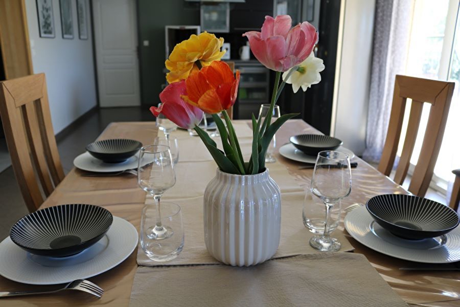 Cette spacieuse maison située au calme au fond d'une impasse sera parfaite pour vous retrouver en famille ou entre amis. Elle se compose au RDC d'une grande pièce de vie avec cuisine toute équipée, salle à manger, salon avec TV (canal +, lecteur DVD avec nombreux DVD mis à disposition), d'une chambre avec 1 lit en 140, d'une salle d'eau avec cabine de douche et de WC indépendant. A l'étage, coin salon en en mezzanine avec TV, une chambre avec 2 lits simples et 2 autres chambres avec chacune un lit en 160, une salle de bain avec baignoire et WC. Côté extérieur, vous pourrez profiter d'une terrasse de 50 m2 équipée d'une pergola bioclimatique, avec salon de jardin et plancha et d'un vaste terrain avec jeux pour enfants (petite cabane et balançoire). Un garage est également à votre disposition et parking privé sur place. Volets dans les chambres. Idéalement situé, vous pourrez découvrir les villes de Poligny et Arbois, respectivement connue pour le Comté et le vin, la grotte des Moidons ou vous baignez dans le lac de Chalain. Note : vous pourrez accéder à 800 mètres à une supérette et à une fromagerie pour déguster le fameux Comté!