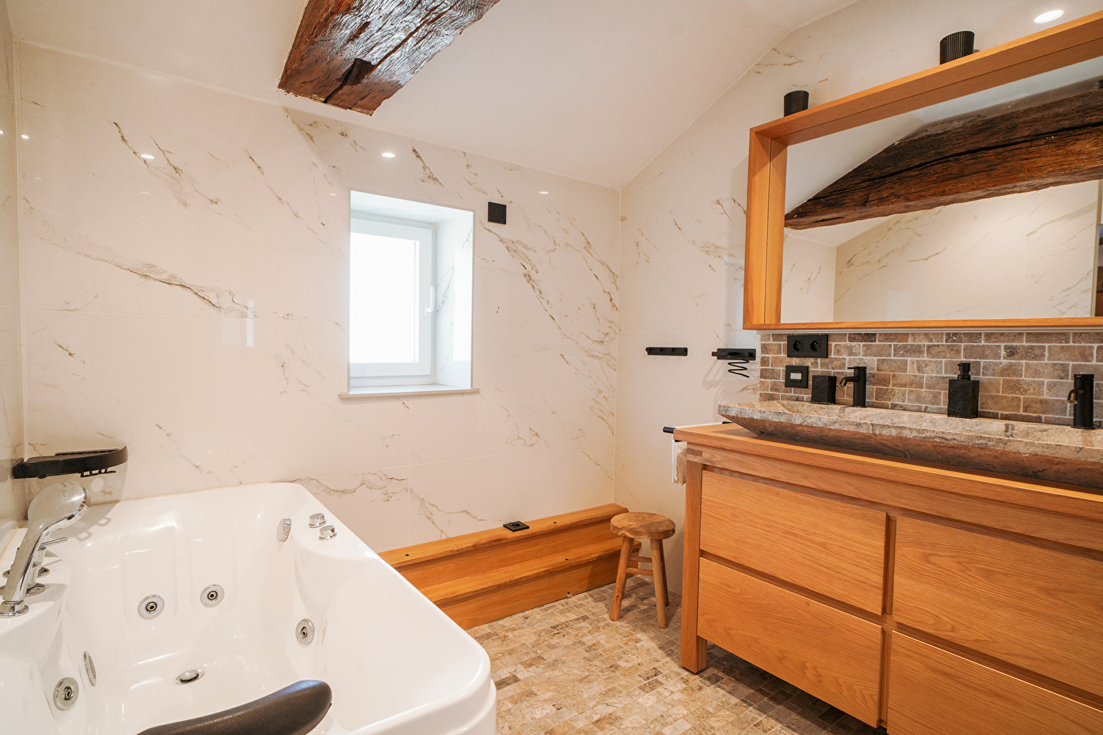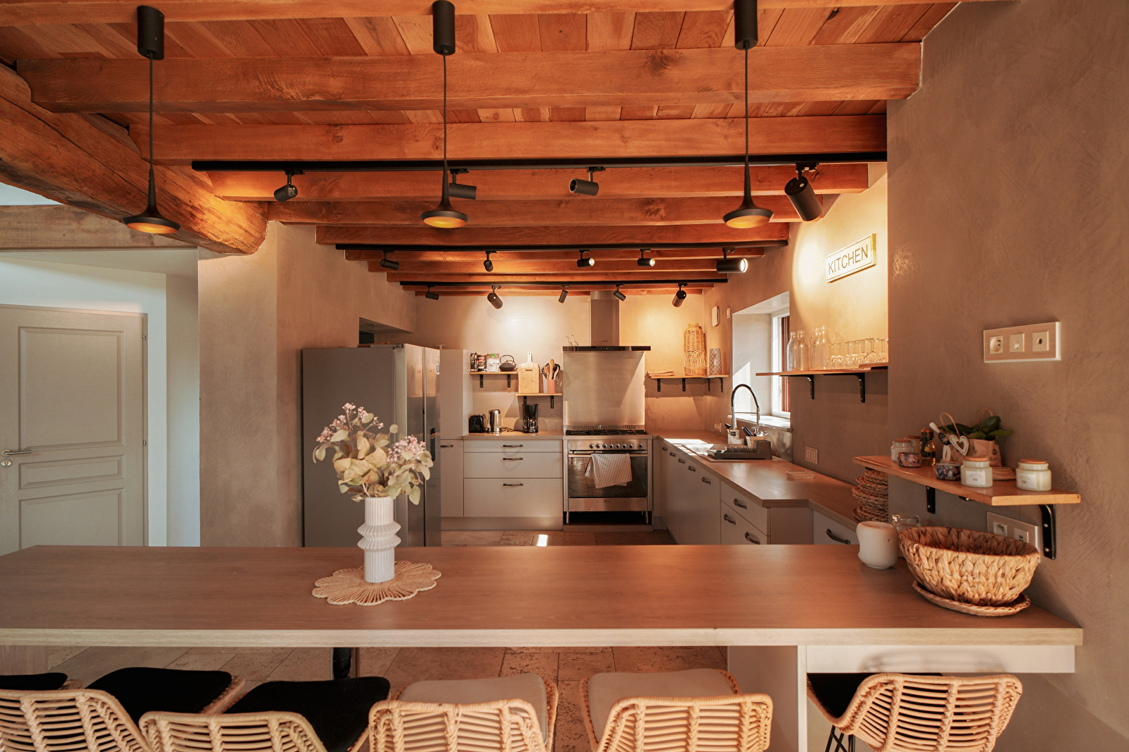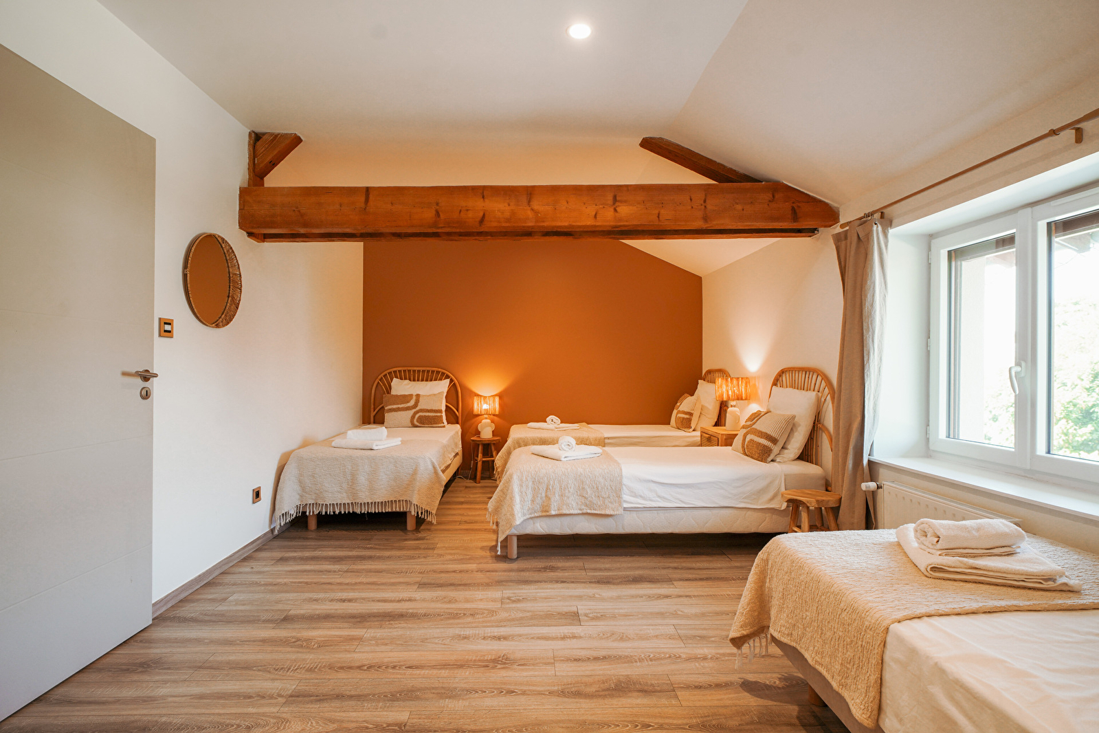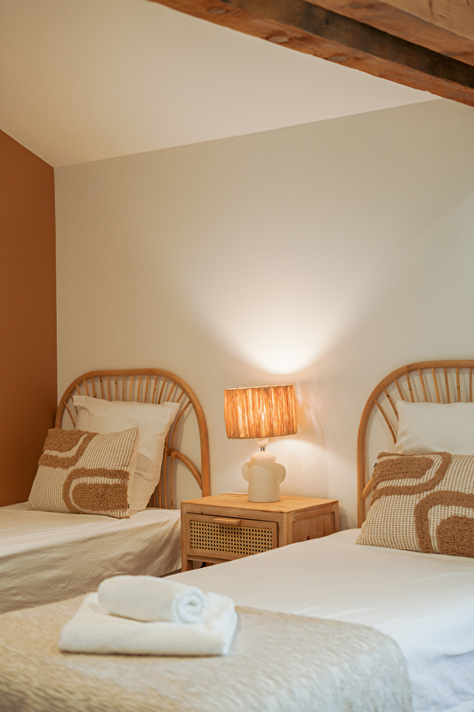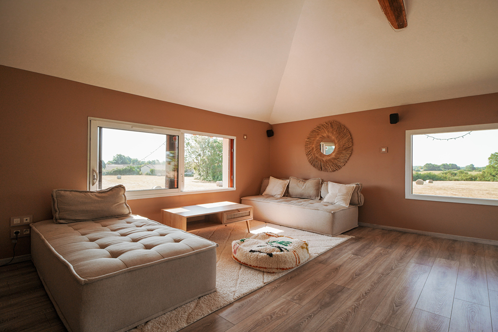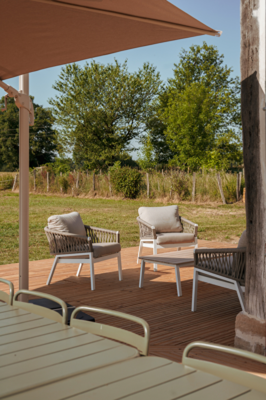 Notre ferme offre de grands espaces lumineux, une décoration chaleureuse et épurée, ainsi qu'un environnement calme et apaisant, loin de l’agitation