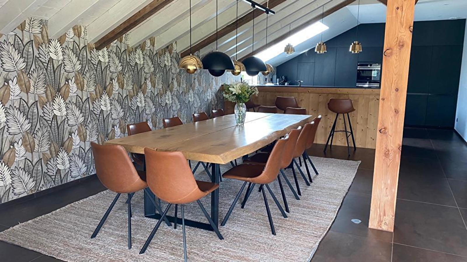 Dépaysement et ressourcement assurés dans cette belle ferme typique du Haut-Jura entièrement rénovée où le charme du vieux bois se mêle parfaitement aux aménagements modernes. Situé au cœur du Parc Naturel Régional, dans un écrin de verdure et à deux pas des remontées et pistes de ski, la ferme du Lanchet vous accueille sur 2 niveaux tout confort et spacieux. Vous disposerez au rez de chaussée d'un vaste hall d'entrée, d'un wc indépendant, d'une cuisine équipée haut de gamme ouverte sur le séjour-salon, et d'un espace jeux pour enfants aménagé sur une petite mezzanine. Vous y trouverez également 5 chambres chaleureuses et cosy, équipées d'un lit king-size (180x200) dont 1 est modulable en deux lits simples. Elles disposent également toutes d'une TV et de sanitaires privatifs, avec vasque et WC séparé. 4 dotées de douche italienne et 1 d'une baignoire. Pour votre confort les lits seront faits à votre arrivée et les linges de toilettes fournis. Côté extérieur, la grande terrasse sera idéale pour les repas pris en famille ou entre amis, sans oublier la détente dans le sauna panoramique ou le bain norvégien. Les activités ne manqueront pas à commencer par la pétanque sur place, la randonnée, le VTT, les balades en raquettes, et le ski avec les remontées mécaniques à quelques encablures. Prestation haut de gamme pour des vacances inoubliables dans les Montagnes du Jura. A découvrir absolument !