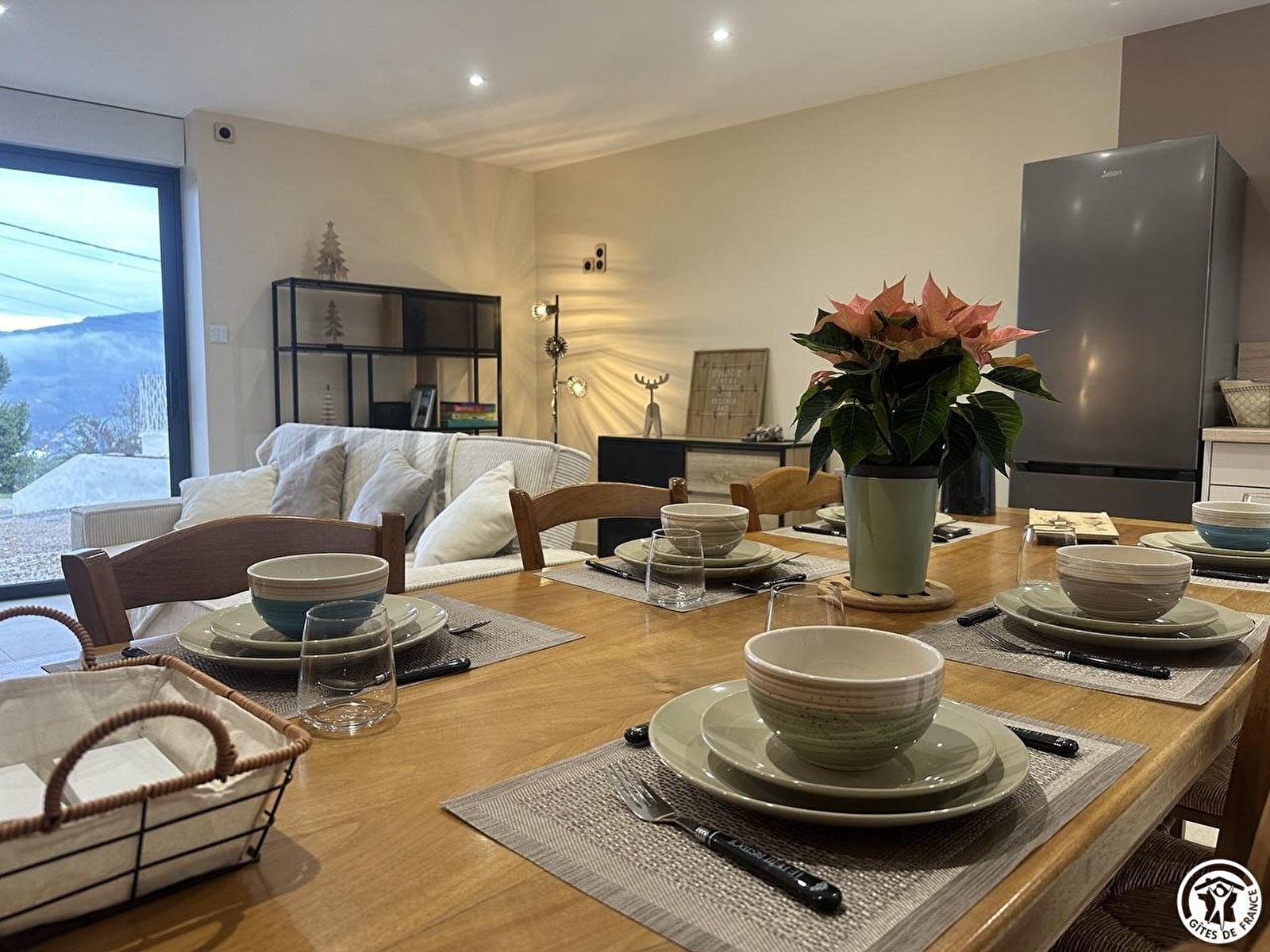 A deux pas ou à 3.5 km de Seyssel en Haute-Savoie, découvrez un gîte familial où authenticité et confort se rencontrent. Nichée dans une ancienne grange rénovée avec soin, cette maison indépendante sur deux niveaux offre une atmosphère chaleureuse mêlant pierres apparentes, beaux volumes et touches boisées inspirées de l'esprit chalet. Pensé pour accueillir confortablement jusqu'à six personnes, ce gîte combine élégance et ambiance cocooning.