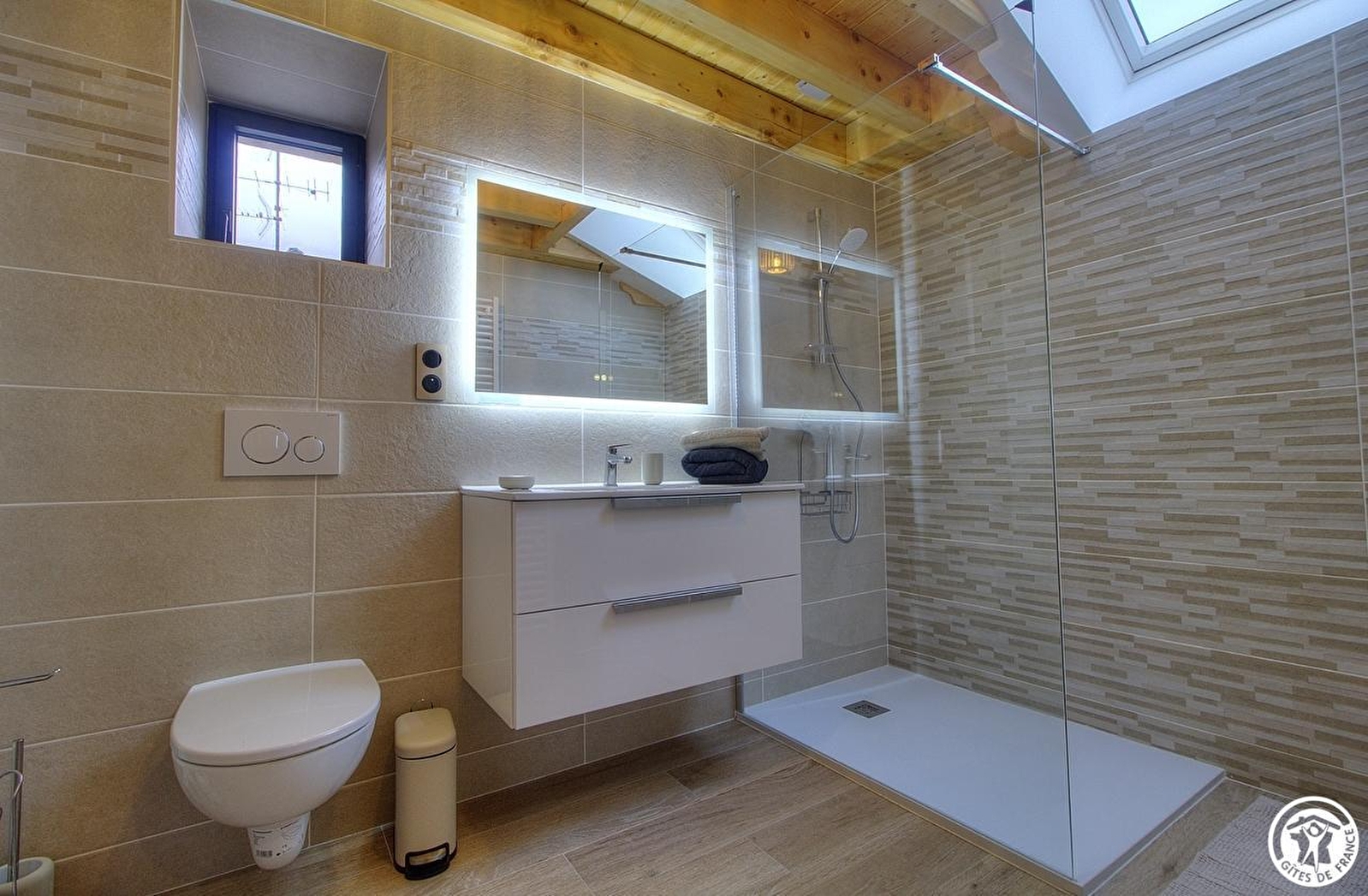 1er étage : 3 chambres (chacune 2*90*190 jumelables). Salle d'eau avec WC.
