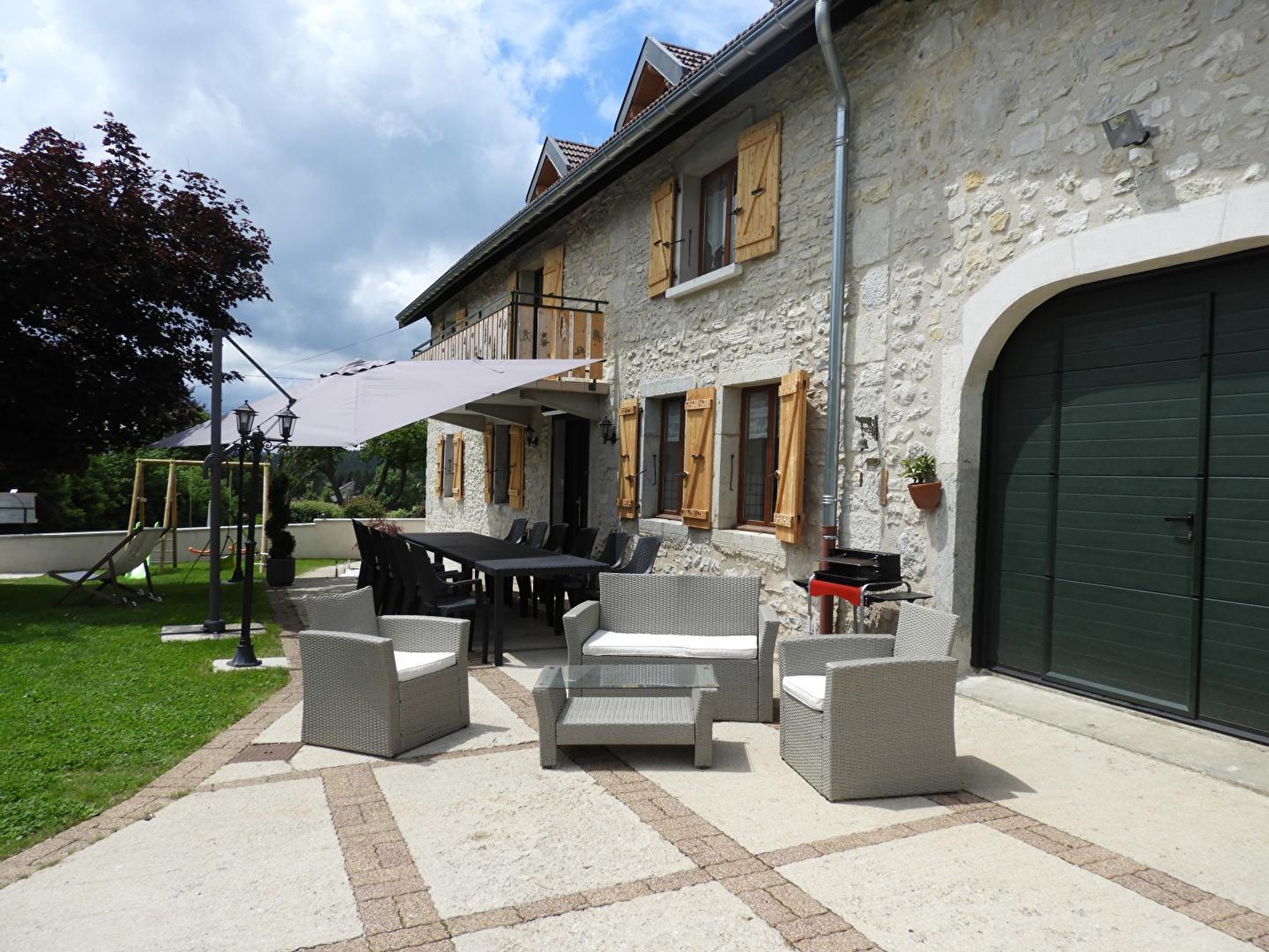 Au coeur du Parc Naturel du Haut Jura, face aux pistes de ski de la station des Gentianes et non loin de la région des Lacs et des cascades, venez profiter de cette grande maison indépendante entièrement rénovée. Au rez-de-chaussée : cuisine indépendante toute équipée, salle à manger, puis salon avec coin bar, canapé, tv écran plat et poêle à bois. Salle d'eau avec douche à l'italienne, wc indépendants. Une chambre avec un lit de 140cm. A l'étage : mezzanine composée d'un espace lecture et jeux, et d'un coin nuit avec 2 lits 1 place. Accès sur le balcon. Deux chambres avec chacune un lit de 140cm et une troisième chambre avec un lit de 140 et un lit de 90cm. Vaste salle de bain avec cabine de douche et double vasque. Wc indépendants. A la belle saison, vous pourrez également profiter du terrain attenant non clos équipé d'un salon de jardin et barbecue. Cette maison est modulable de 2 à 15 personnes et toutes les formules de location proposées seront toujours en maison individuelle. N'attendez plus pour réserver votre séjour version été ou hiver ! Pour la caution, deux chèques vous seront demandés, l'un de 850€ pour la maison, et l'autre de 150€ pour le ménage.