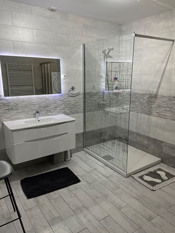 Au coeur de la région des Lacs et des Cascades, logement indépendant aménagé dans la maison mitoyenne des propriétaires, où se trouve également un autre gîte. Entrée au rez-de-chaussée avec rangements. Au premier étage : vaste et lumineux salon, grande télévision écran plat, canapé. Cuisine indépendante entièrement équipée. Une première chambre avec un lit de 140. Une seconde chambre avec un lit de 160x200 et deux lits superposés de 90x200. Salle d'eau avec grande douche, lave-linge et sèche-linge. Wc indépendants. Terrasse à proximité du gîte, équipée pour la belle saison d'un salon de jardin, parasol et barbecue. Les draps sont fournis gratuitement mais pas les serviettes de toilettes.
