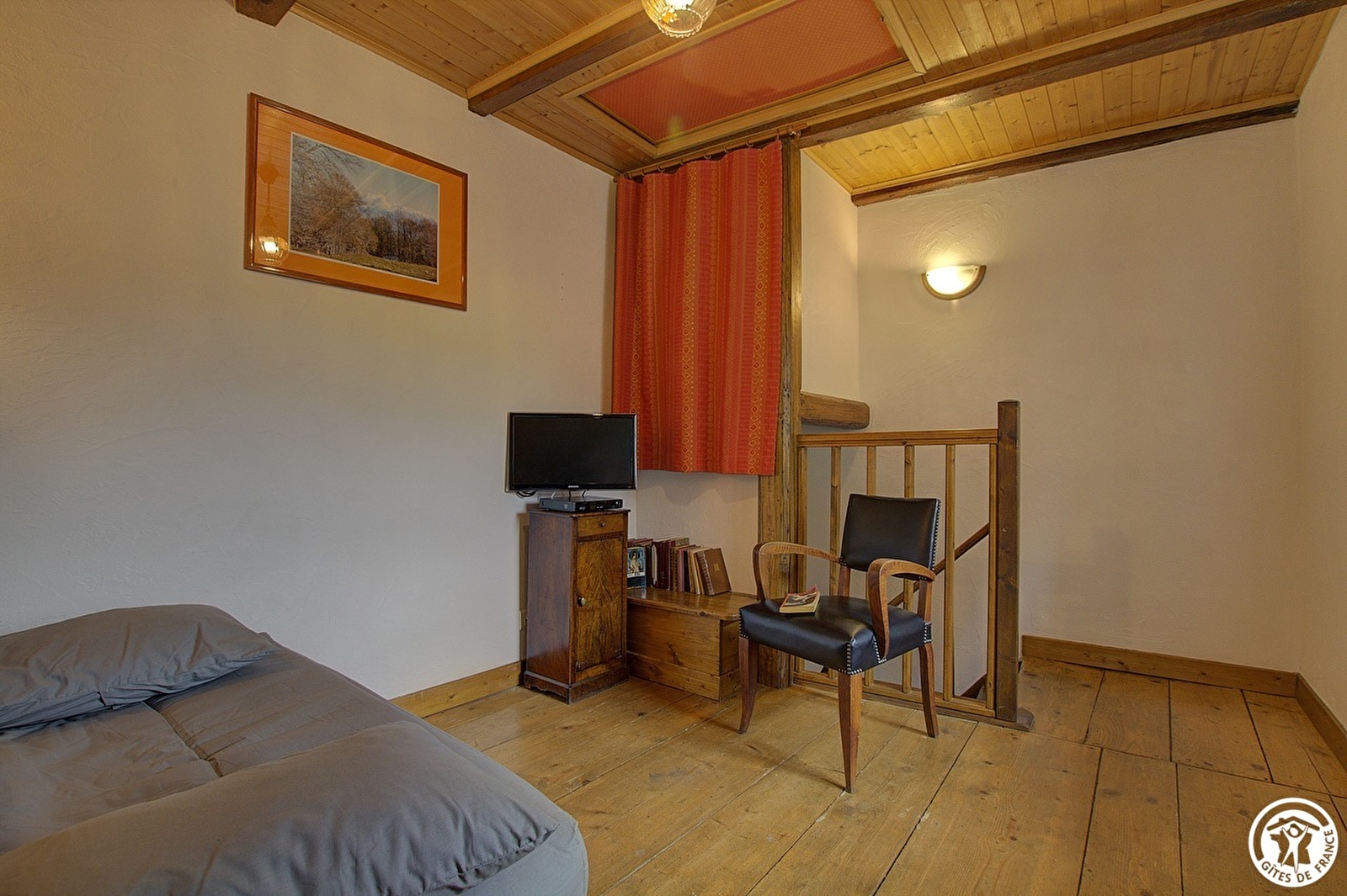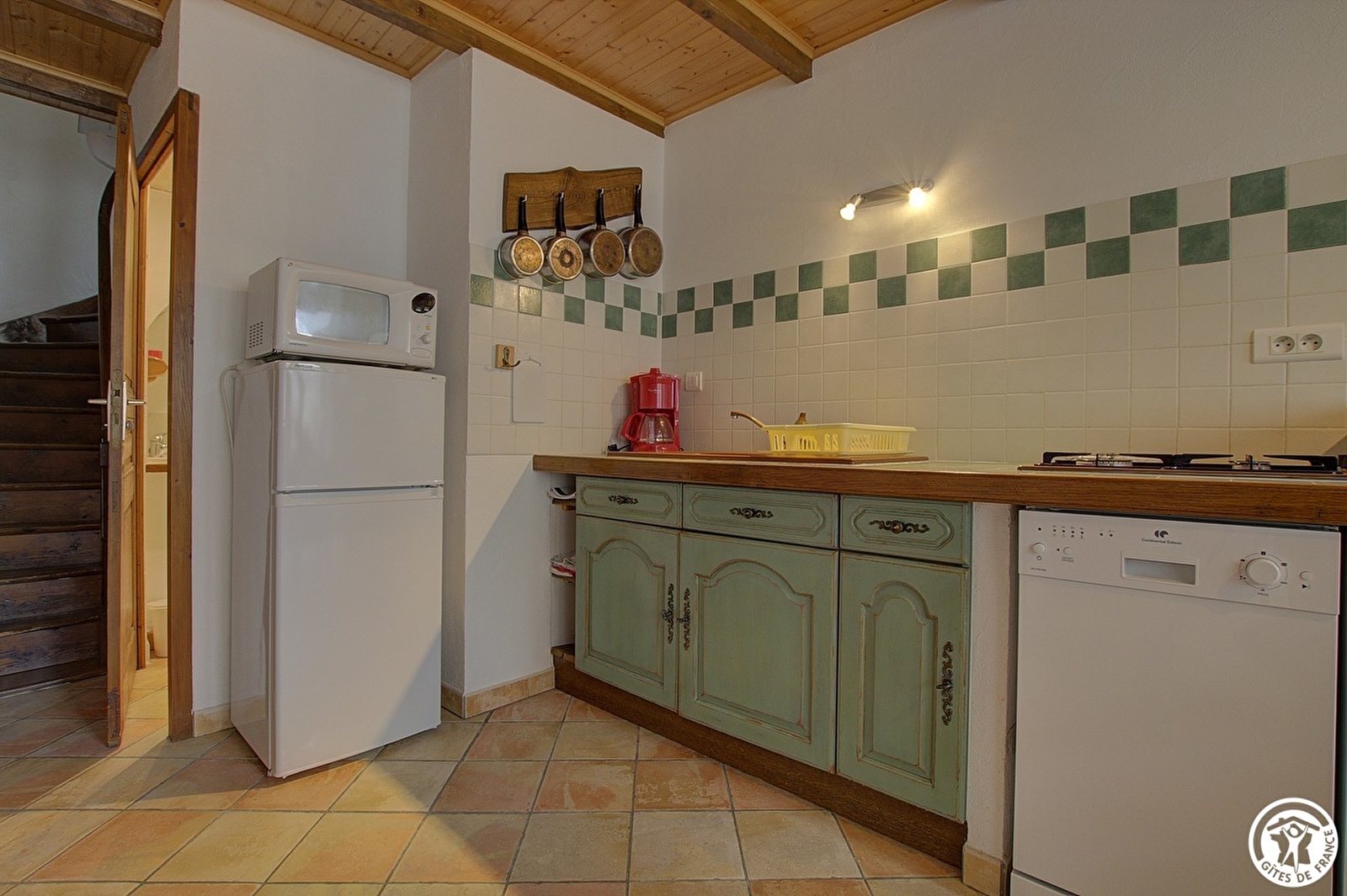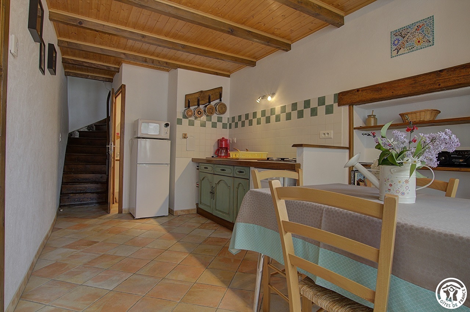 Rez-de-chaussée : cuisine très bien équipée avec lave-vaisselle, salle d'eau/wc. A l'étage : coin salon avec BZ (couchage de 120 x 190 possible) et télévision ; 1 chambre avec 1 lit 2 personnes et un lit bébé de 140x60 (lits faits à l'arrivée). Chauffage au sol électrique. Terrasse de 11 m² aménagée devant le gîte, barbecue, salon de jardin, parking réservé.