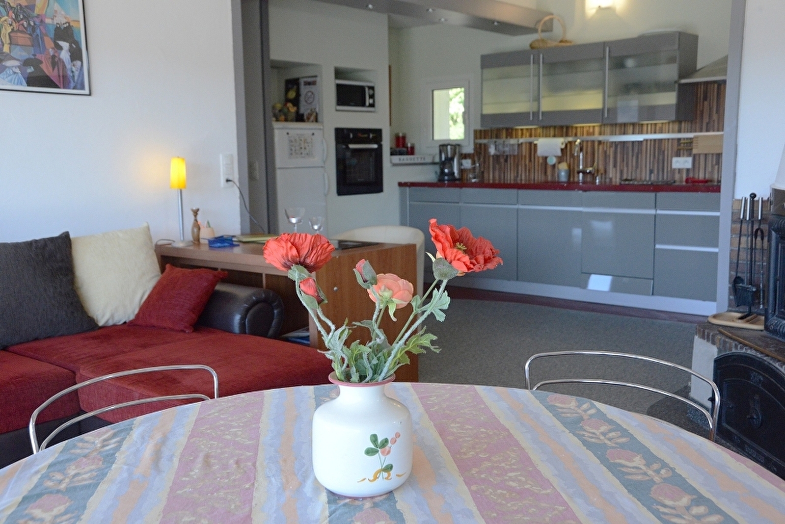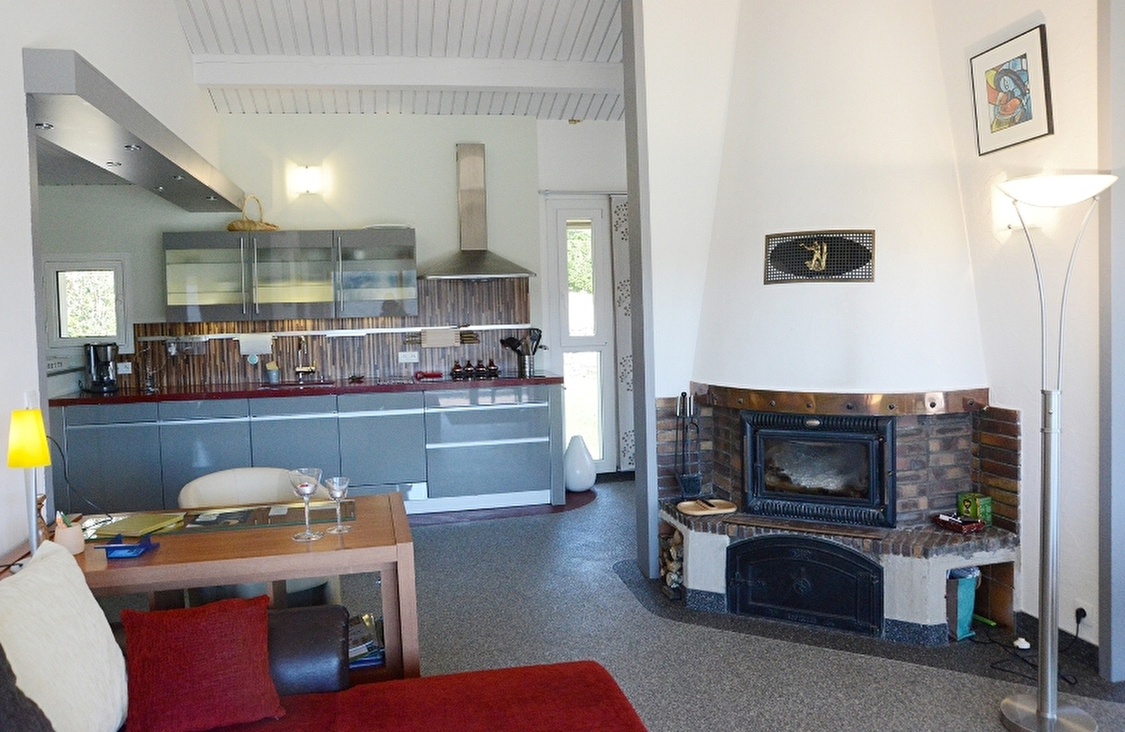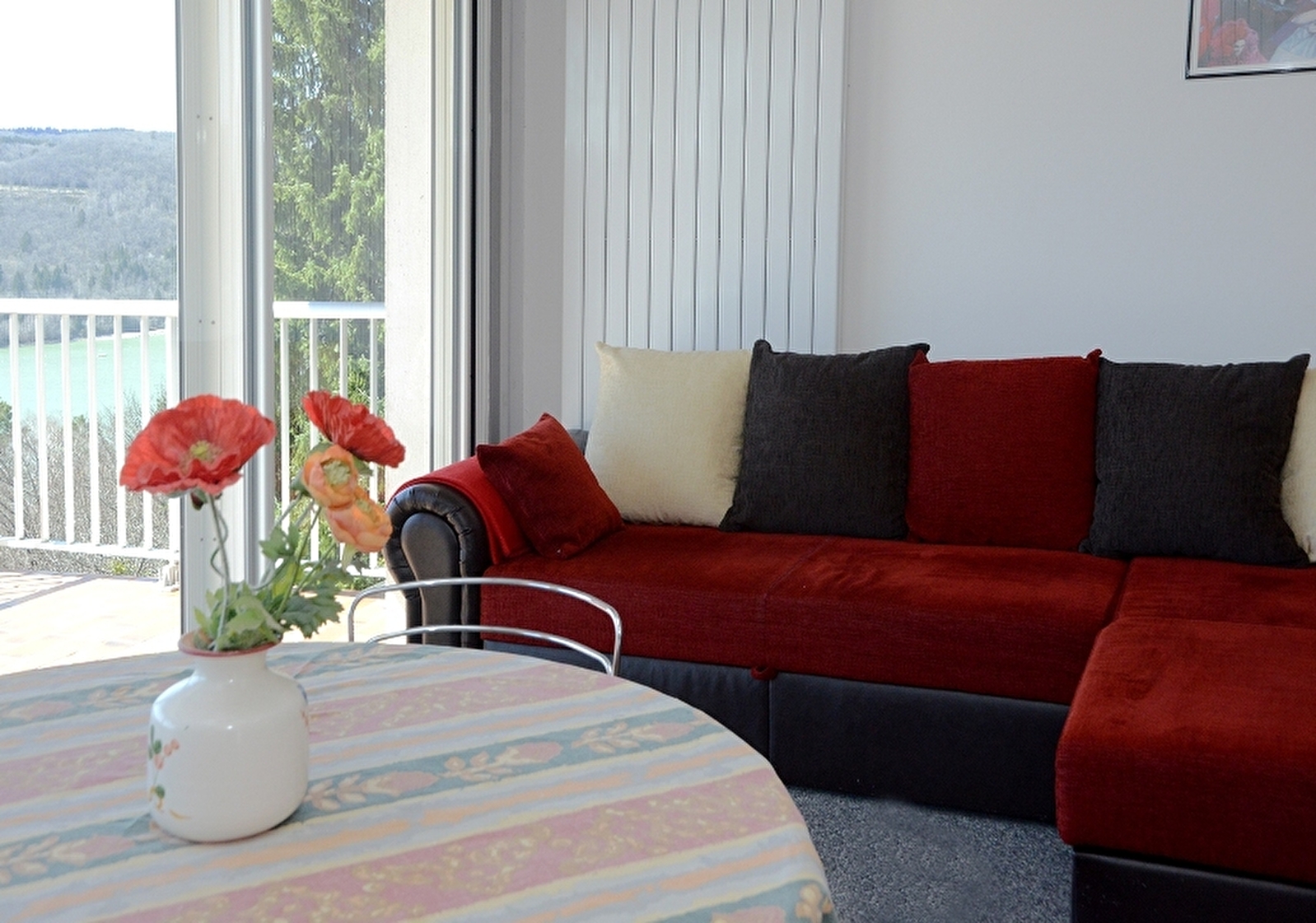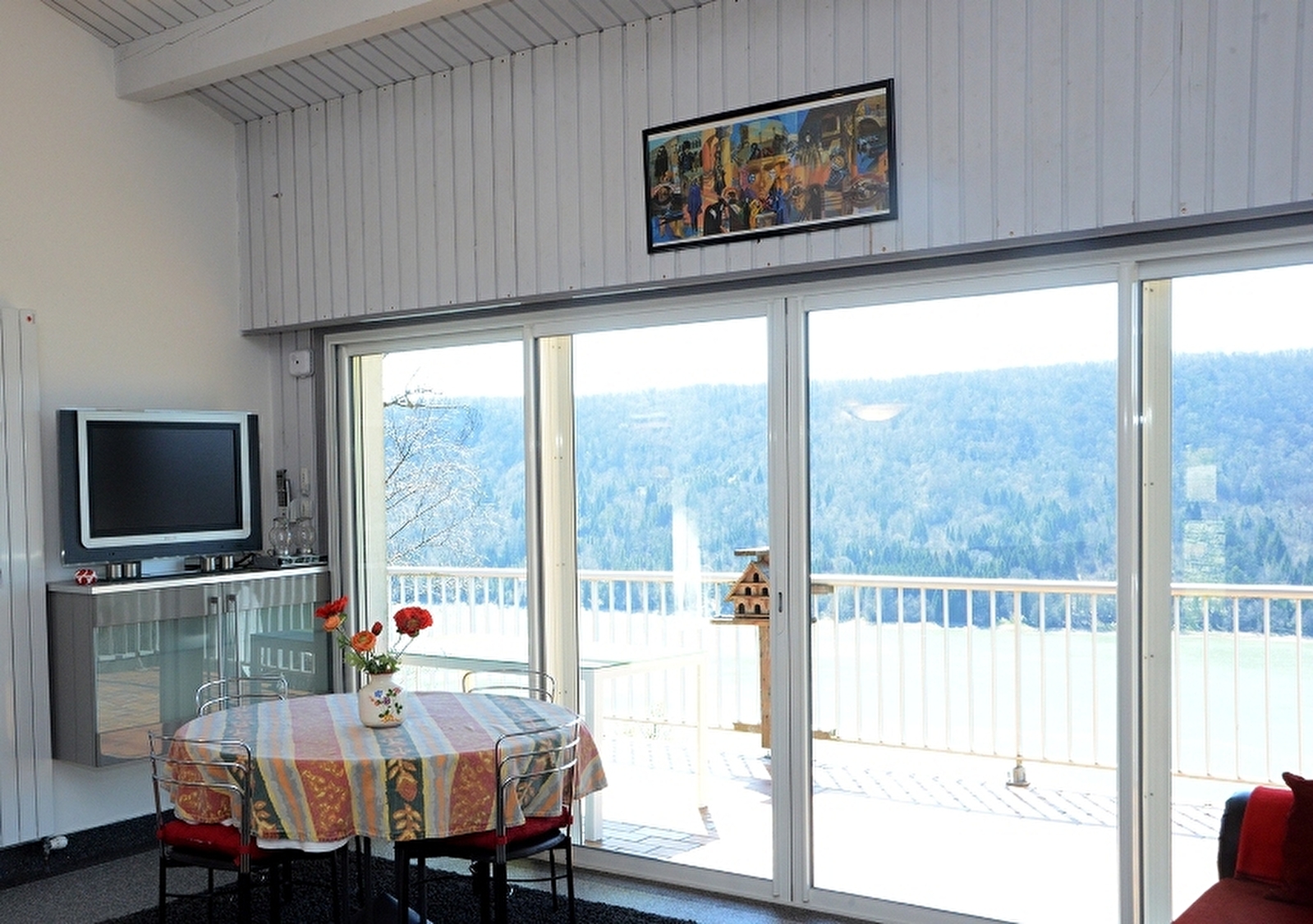 Logement indépendant à l'étage entièrement rénové, mitoyen avec un autre gîte. Splendide vue sur le lac de Vouglans. Salon avec canapé convertible (2 couchages supplémentaire possible), salle à manger avec belle cuisine intégrée toute équipée, 1 chambre avec 1 lit 2 pl (160x200), sdb avec douche, Wc indépendant. Vous pourrez profiter de la vue imprenable sur le lac directement depuis le balcon de 24 m². Salon de jardin, barbecue et local en commun avec le gîte du RDC. Bois fourni gartuitement. Supplément de 35€ si présence d'un animal (forfait ménage obligatoire)
