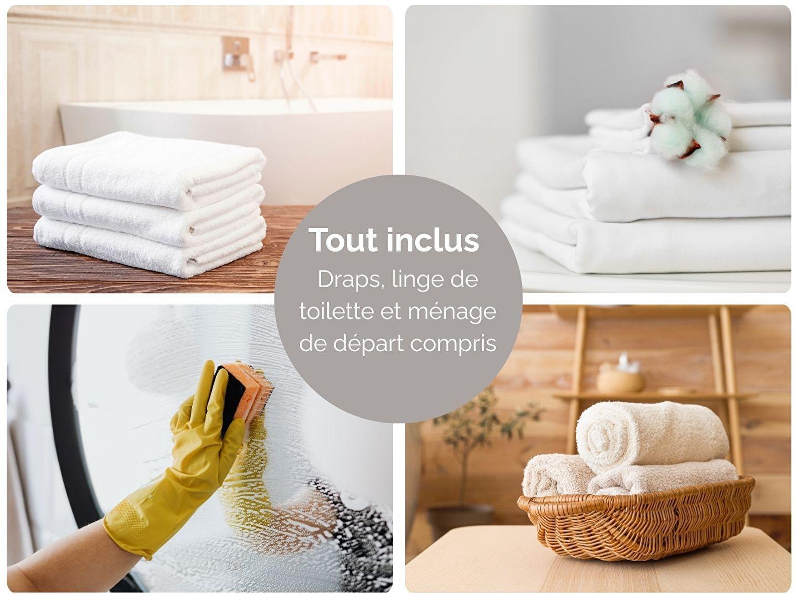 Voyagez léger : tout est compris – les lits faits à l'arrivée, le linge de maison et de toilette, ainsi que les charges : compris. Le ménage également. En plus les animaux sont acceptés (option). Parking collectif.