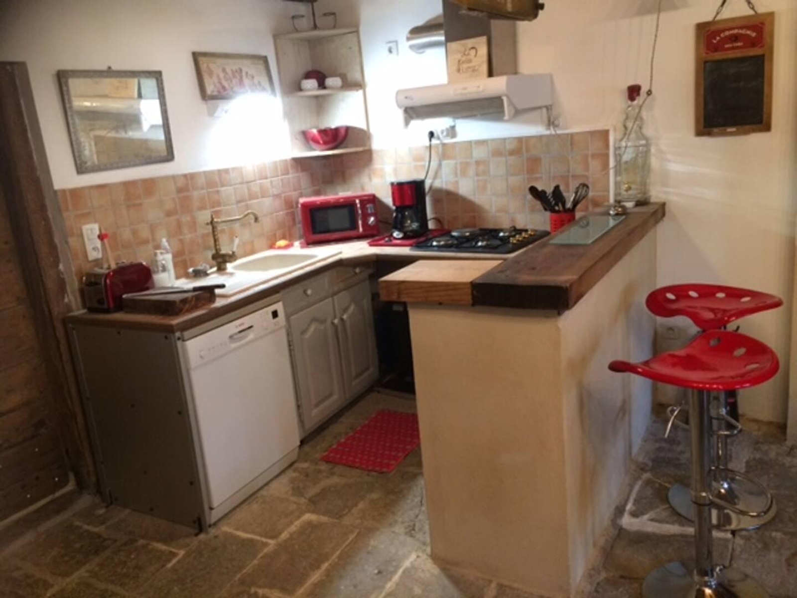 Cette longère, habitation traditionnelle de la Petite Montagne a été refaite en sauvegardant son caractère rustique et typique (dalles pierres ,portes anciennes ,poutres...) Elle se compose au rez-de-chaussée, d'une cuisine équipée, d'une salle à manger avec poêle à bois (fourni gratuitement), d'une salle d'eau avec douche, d'un WC indépendant et d'une buanderie avec lave-linge. Au 1er étage un salon avec canapé, TV et 2 couchages (1 lit bateau 140*190 et 1 lit simple 90*190), une chambre avec 1 lit double (160*200). Pour votre plus grand confort, les lits seront faits à votre arrivée et les serviettes sont fournies. Côté extérieur (situé juste en face de la maison), vous pourrez profiter d'un salon de jardin, de transats et d'un barbecue. Le propriétaire, accompagnateur diplômé peut vous proposer différentes prestations payantes : rando quad, rando cheval, location de VTT, balade motos en tant que passager possible BMW 1200 . Idéalement situé pour les amoureux de la nature, du calme et de la randonnée. Note : possibilités de parquer les chevaux au pré à 50 m, 'étable fermée attenante au gite pour entreposer les vélos. garage pour motos dans la grande écurie. Un petit atelier mécanique (gonfleur chargeur petit outillage) est à votre disposition. Un parking voiture est disponible et vous avez également la possibilité d'un garage. Note : un forfait ménage obligatoire s’appliquera automatiquement au moment de la réservation.