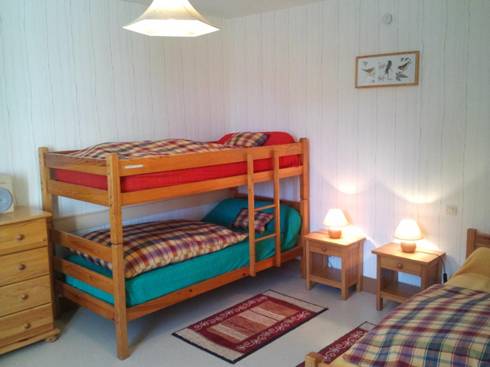 Appartement confortable au premier étage de la maison des propriétaires, où se trouve également un autre gîte, idéalement situé à proximité des pistes de ski et de nombreux sentiers de randonnée. Pièce à vivre avec cuisine et espace détente (canapé et télévision écran plat). Une première chambre équipée d'un lit de 140cm, la seconde 3 lits de 90cm dont deux lits superposés. Salle d'eau avec douche et lavabo double vasques, wc séparés. Vaste terrain attenant non clos, avec salon de jardin et barbecue. Garage privatif fermé. Accueil des animaux : 1 maximum sur demande. Parking sur place - volets dans les chambres