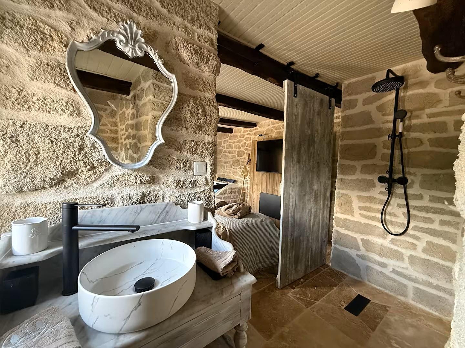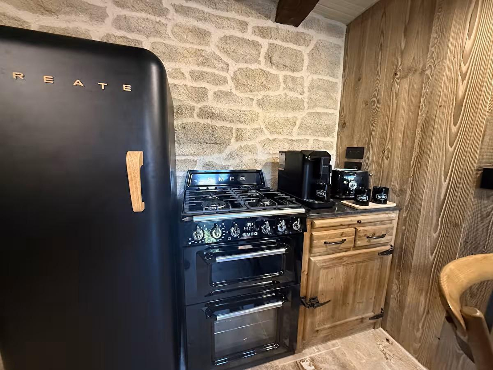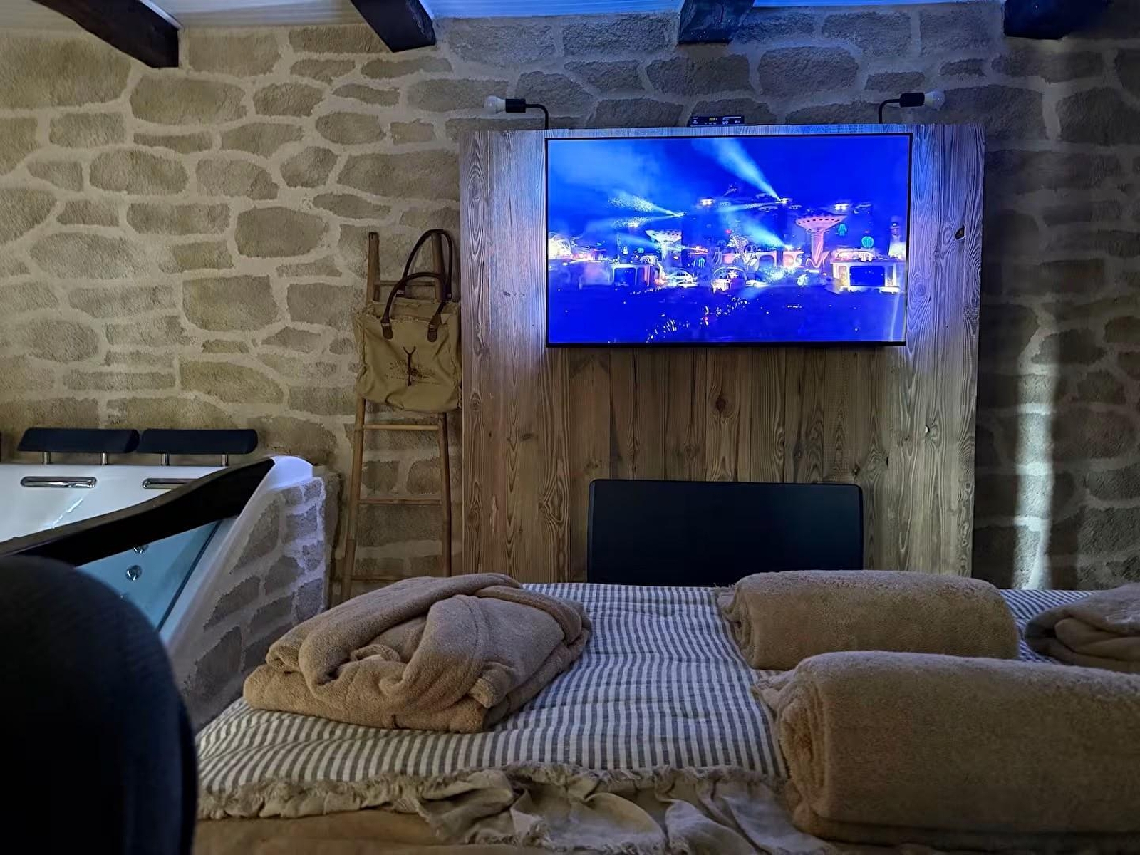 Petite Longère de Campagne privée en pierre de plain-pied située en annexe du gîte Le Petit Refuge (G2687) CUISINE - 10 m² cuisine en pierre totalement équipée un piano de cuisson Smeg Un réfrigérateur-congélateur Create Une machine à café Create Robot Multifonction Magimix Un Grille-Pain Une Bouilloire Plats, vaisselles et ustensiles nécessaires. Appareil à raclette (pour 2) Appareil à fondue (pour 2) 1 SUITE CHAMBRE A THEME - 16 m² petit cocon avec sa balnéo spa duo Lit Queen-Size de 160x200 cm TV QLED Ambilight Connectée 126 cm Balnéo Spa pour 2 personnes : balnéothérapie de luxe Spa, 48 jets (plantaires, dorsaux, latéraux...), chromothérapie, 6 Turbo-buses SALLE D'EAU - 6m² Attenante à la suite-chambre Grande douche à l'italienne Meuble 1 Vasque et Mroir WC SALLE DE MASSAGE (en supplément sur réservation) Massage en solo ou en duo LES EXTERIEURS Terrasse privative Terrain de 1961m offrant calme et espaces Aire de jeux Wickey enfant Garage fermé (Porte motorisée) Borne de charge électrique (en supplément) LA GRANGE (espace commpun avec le gîte le petit refuge) Barbecue Weber XXL Espace de loisir Bains de soleil détente Table 16 assises Salon détente Panier de Basket Etabli Voiture enfant