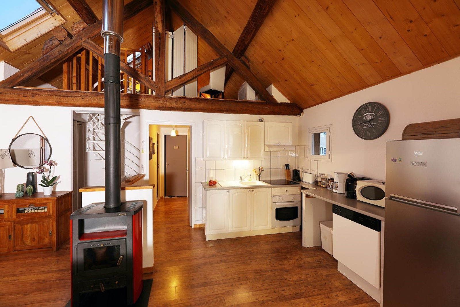 Logement en duplex aménagé dans un bâtiment comprenant un autre gîte, au coeur de cette station thermale dotée de Salines classées au Patrimoine mondial de l'Unesco. Au RDC, hall d'entrée, au 1er étage: séjour-salon, coin cuisine intégré, poêle à bois, lect DVD, chaine HIFI, salle d'eau, WC indépendant, sèche-linge, ch1: 2 lits 1 pl, mezzanine: 1 lit 2 pl, chauffage électrique. cour, Terrasse, salon de jardin, accès au magnifique parc de la propriété, à la piscine commune couverte et chauffée (ouverte de juin à septembre). Location de draps: 10€/lits, forfait ménage: 40 €. charges comprises. Semaine Toussaint:550€