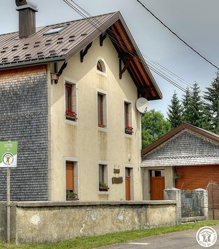 Accès sur une cuisine bien équipée et ouverte sur la pièce de vie avec un canapé convertible de qualité (2 personnes), un coin nuit avec 2 lits superposés (90*200), salle d'eau et WC. Buanderie commune avec accès au sèche linge et lave linge. Chauffage avec poêle à granules, garage commun aux gîtes. Gîte idéalement situé pour toutes les activités hivernales (ski, raquettes) et estivales (randonnées, VTT).