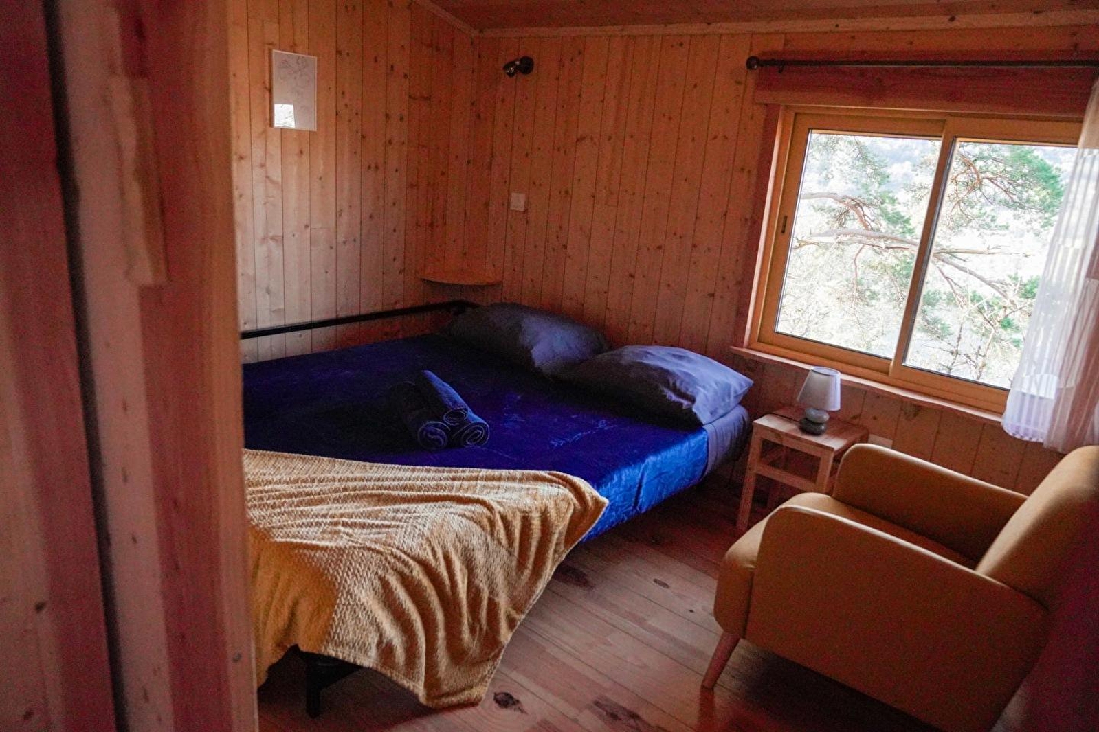 vitrocéramiques, un four micro-onde et un frigo). Cette cabane offre le luxe d'une chambre privative, avec un lit 2 personnes de 150 cm de bois. L'accès à la salle d'eau et au wc se fait par la pièce de vie principale. Possibilité d'un couchage supplémentaire dans la pièce de vie. A votre arrivée, un kit avec les produits de " base " vous est remis. Sur demande, un panier "petit déjeuner" vous sera porté le matin. Nos coup de cœur :